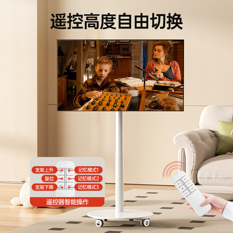 电动电视机支架可移动落地推车遥控智能升降带轮657585寸通用挂架