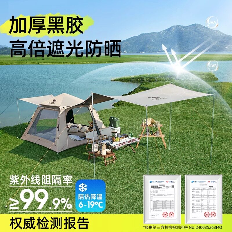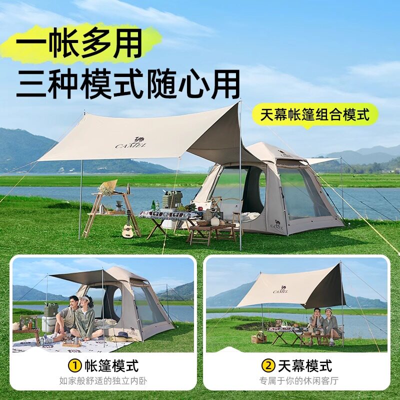 骆驼帐篷户外露营野营过夜便携式折叠全自动全套装备加厚黑胶新款