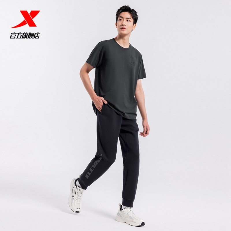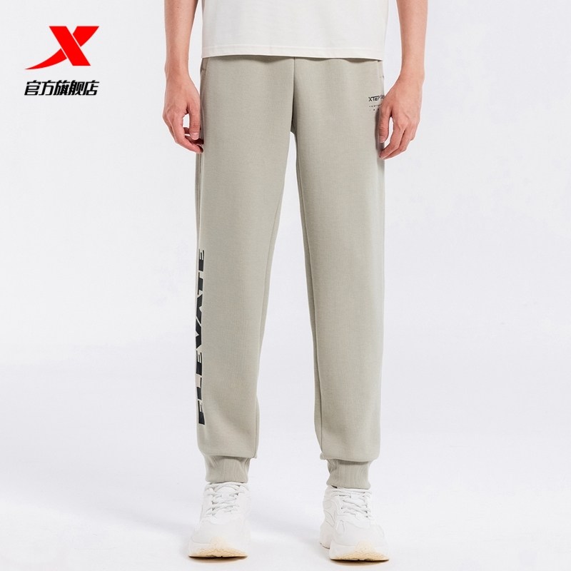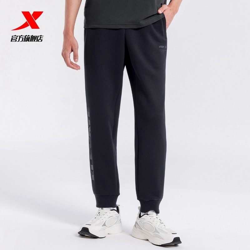 特步束脚裤男款春秋季印花运动裤针织长裤通勤健身裤子宽松休闲裤