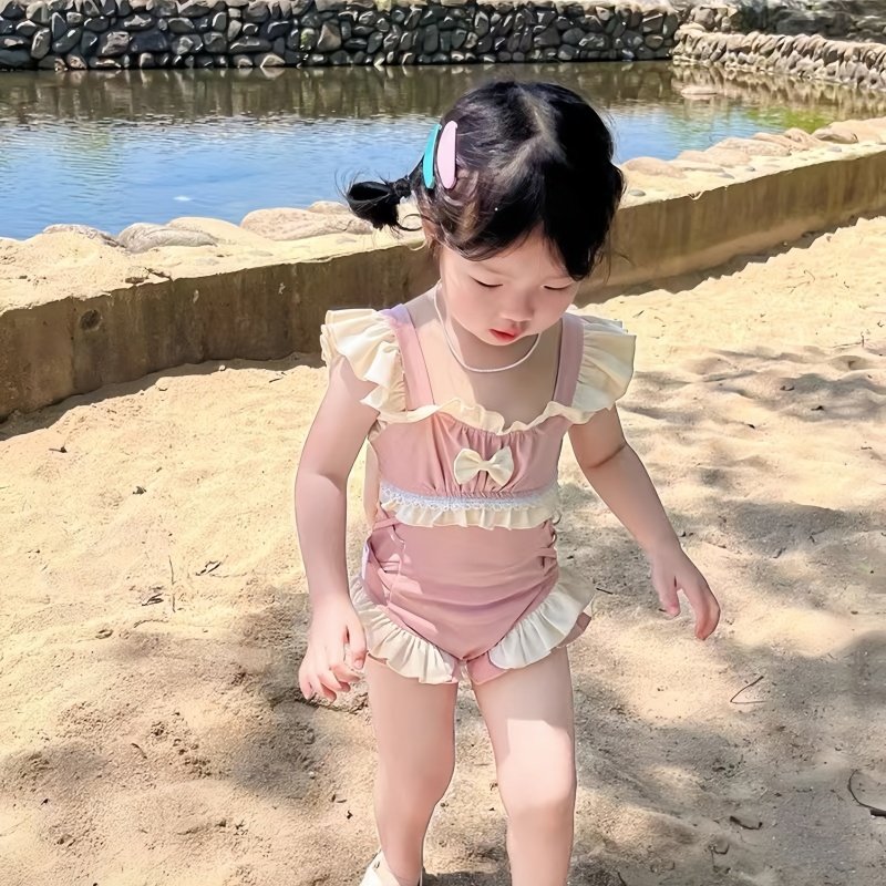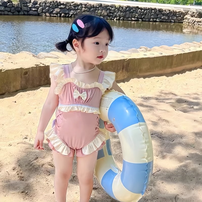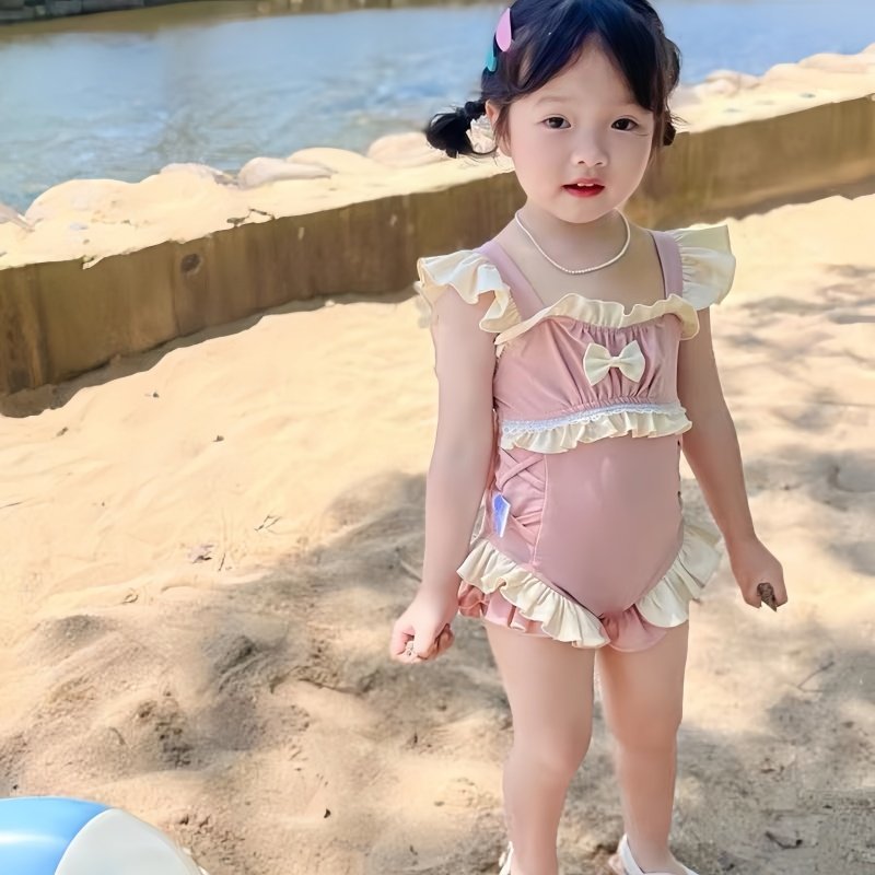 女童泳衣儿童速干2024新款连体网红女孩衣服荷叶边公主风洋气泳装