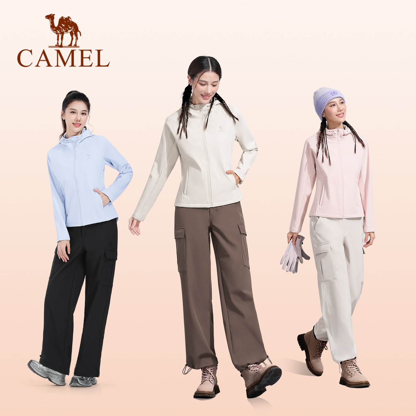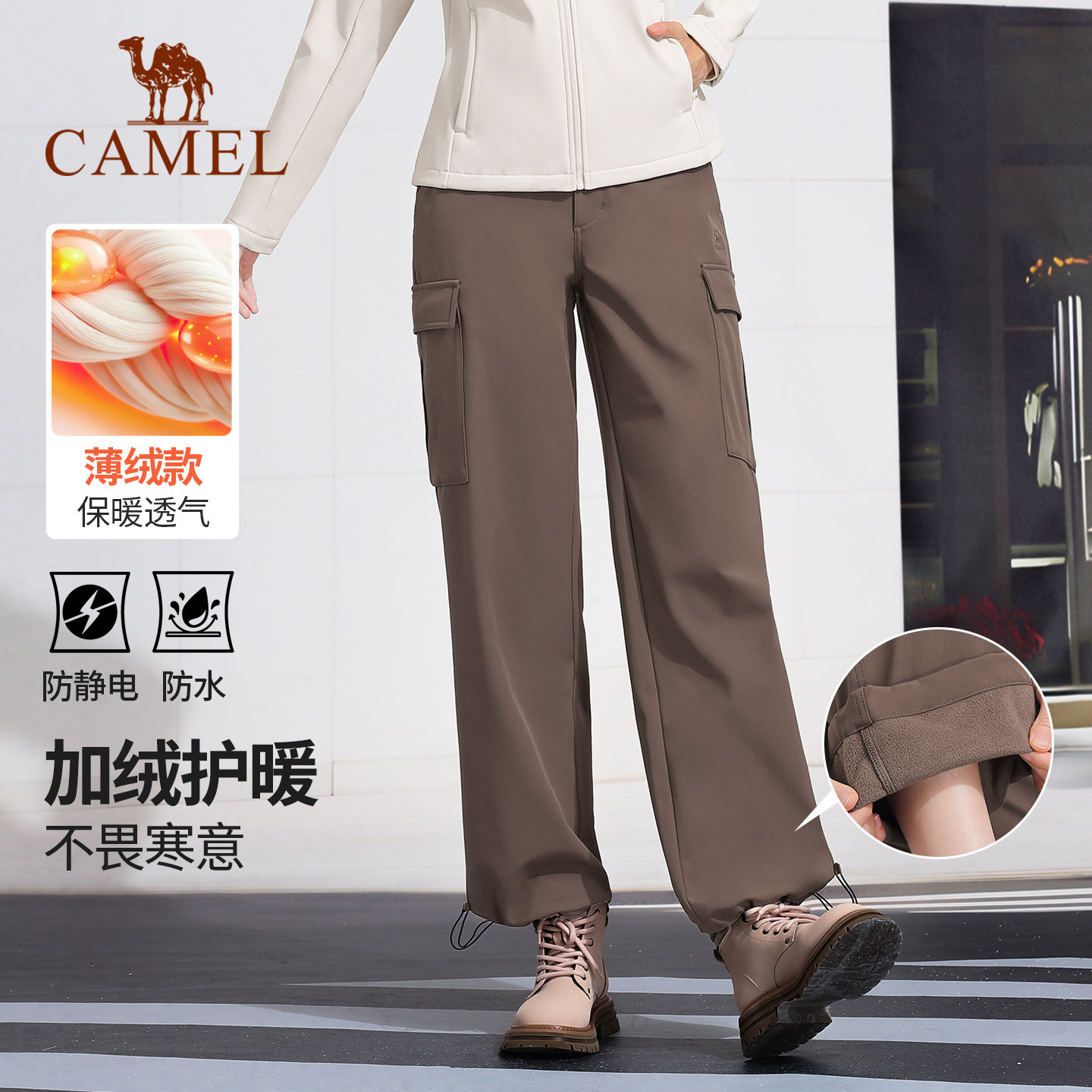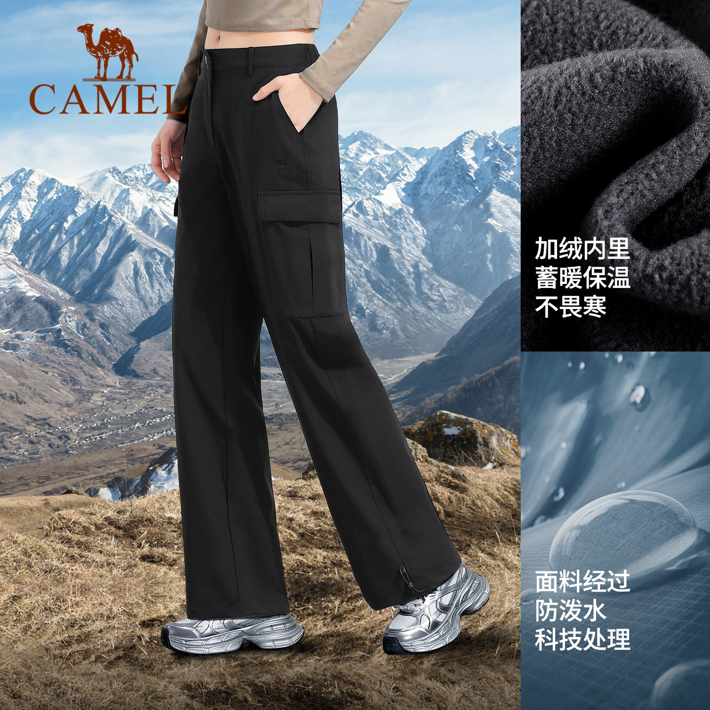 骆驼工装裤男女款秋冬季时尚户外运动裤防泼加绒登山防风冲锋长裤