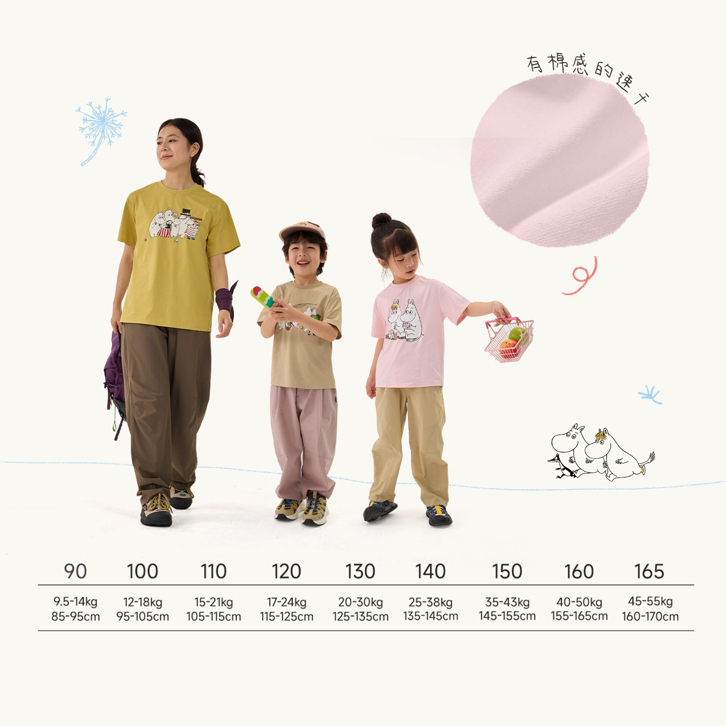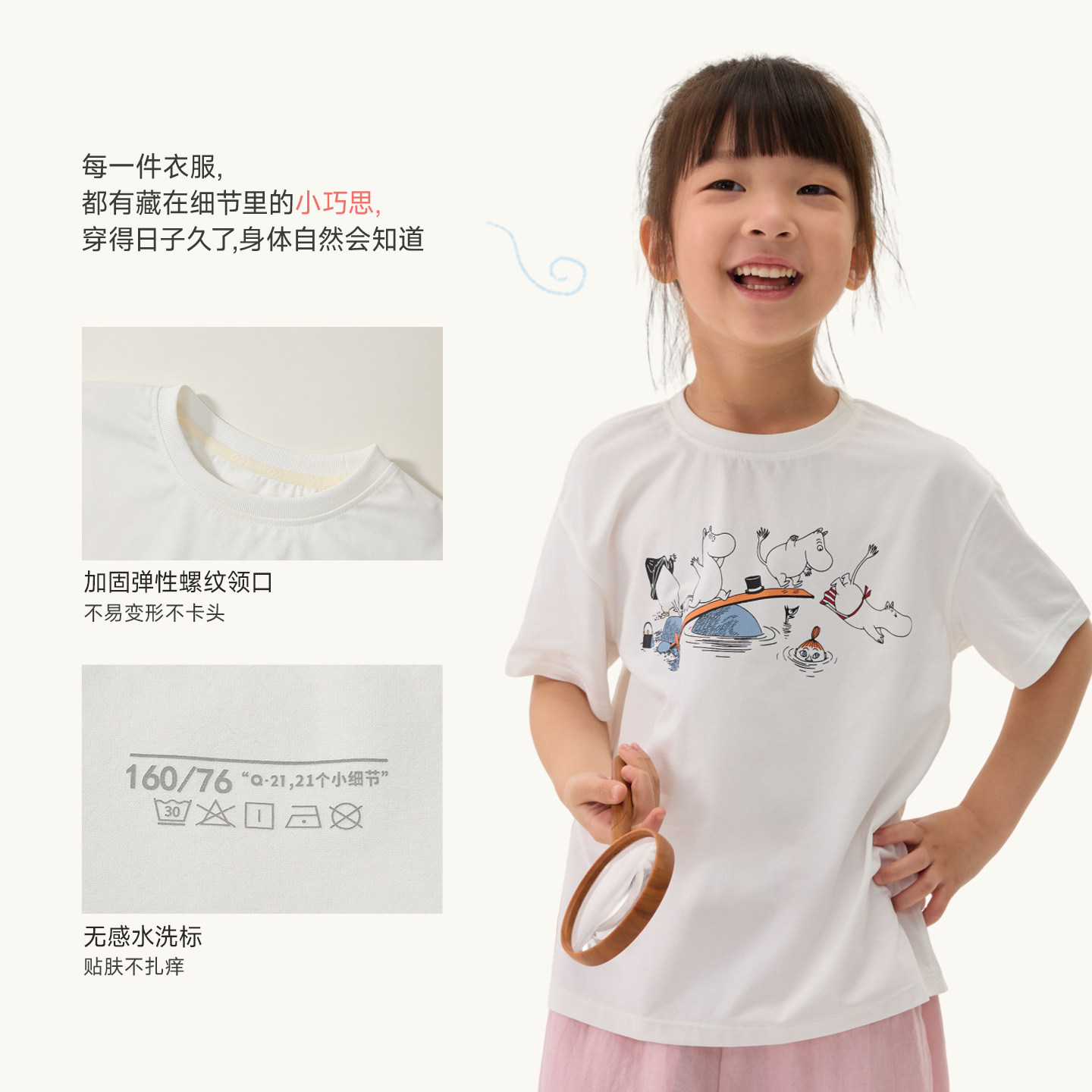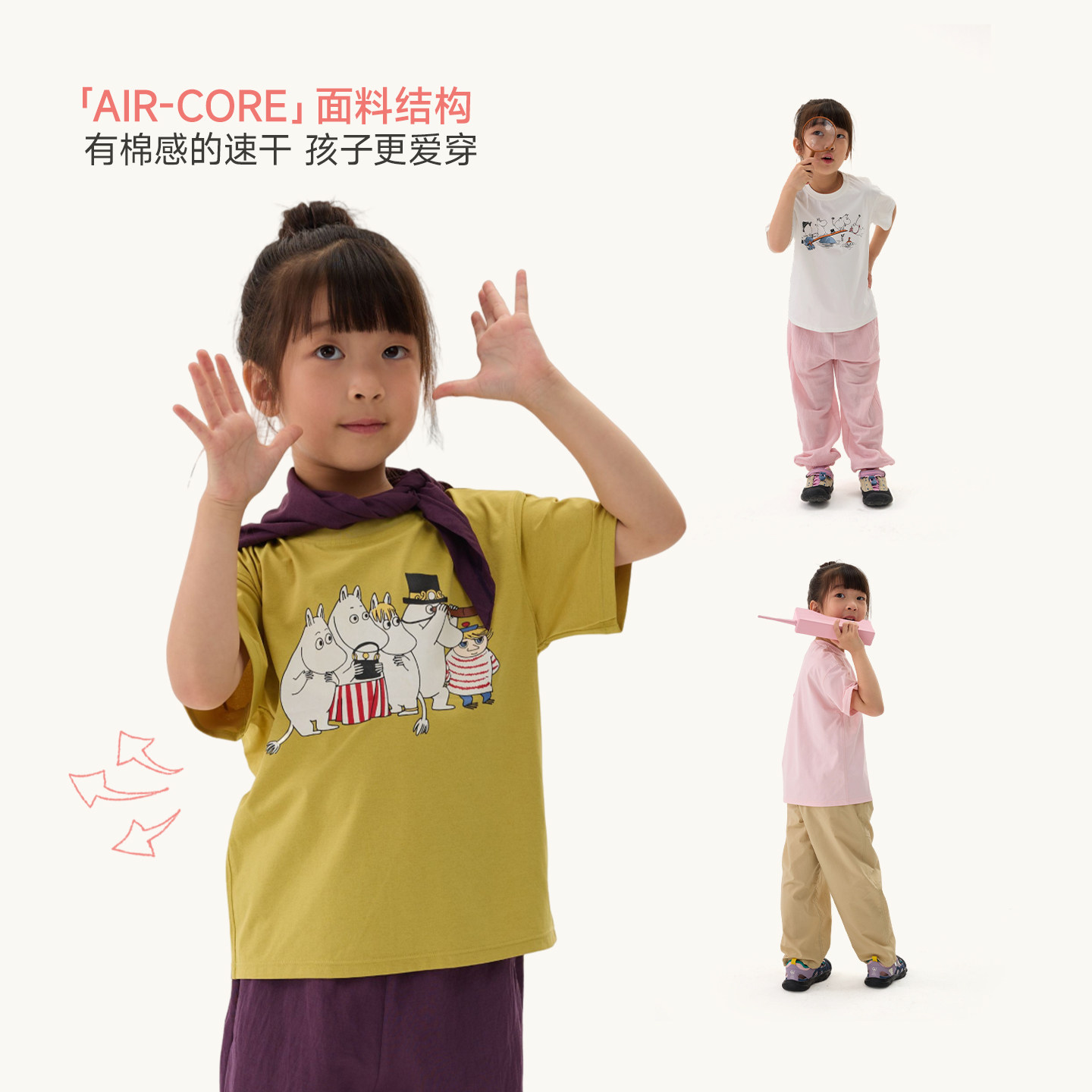 Q21x姆明联名蒲公英短袖吸湿速干T恤男女童春夏纯色印花打底上衣