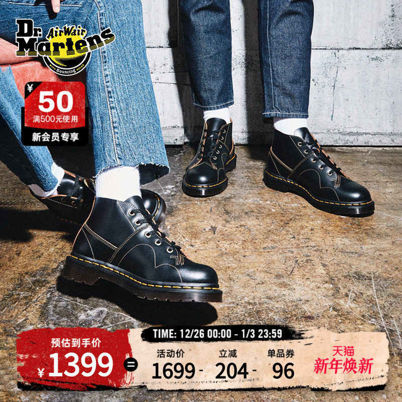 Dr.Martens马丁博士Church英伦冬舒适猴脸悟空光面皮黑短靴马丁靴