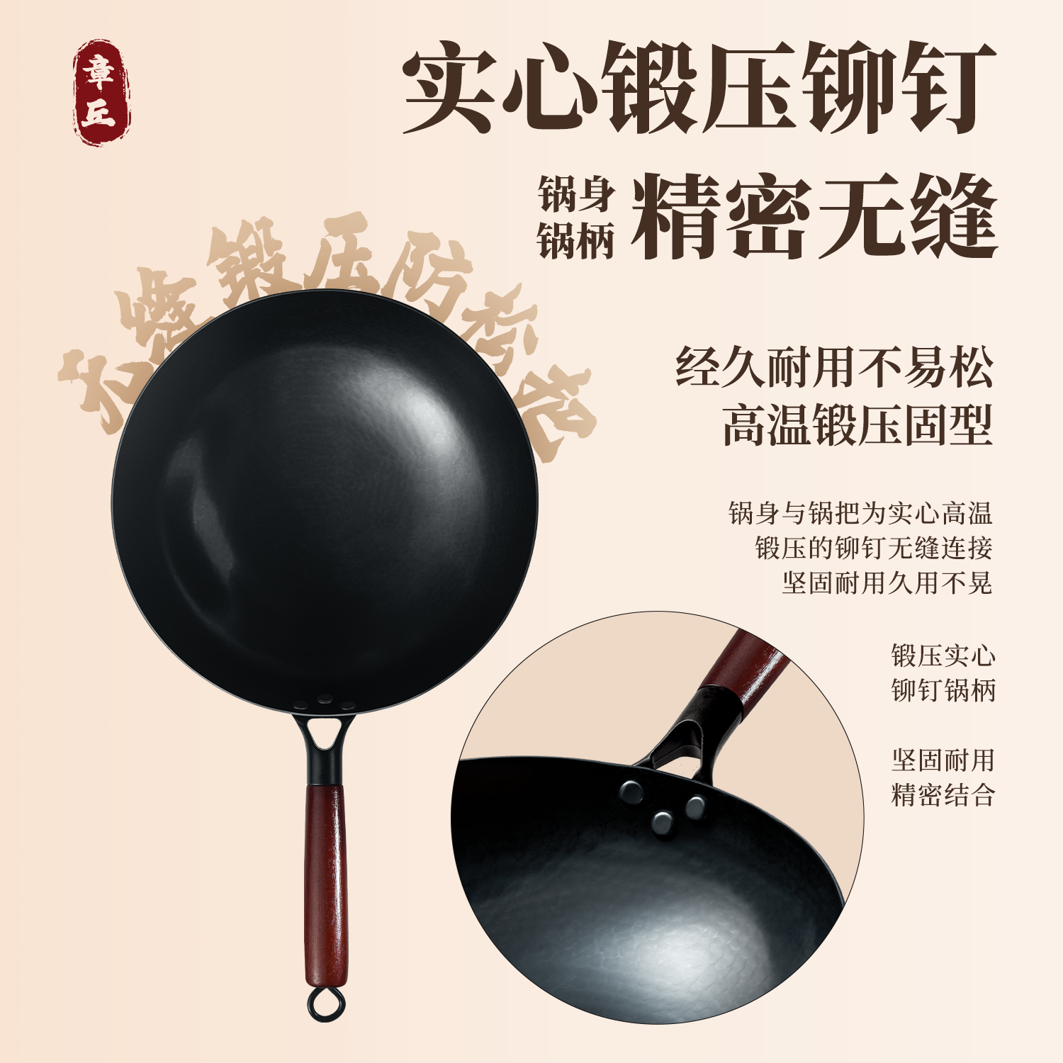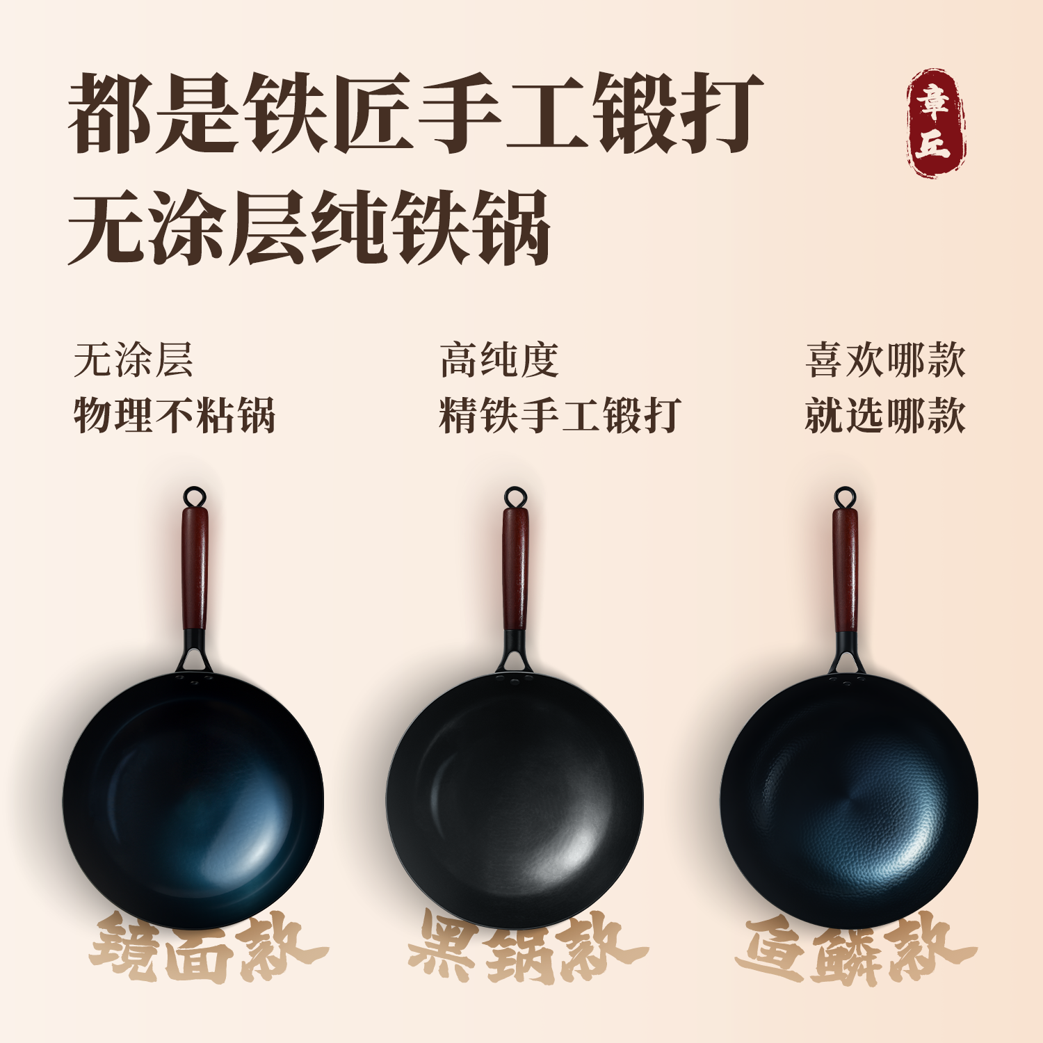 章丘炒菜锅传统铁锅官方旗舰老式炒锅家用不粘锅无涂层燃气灶适用