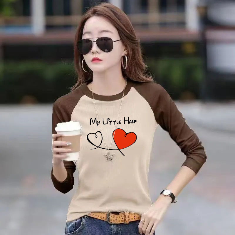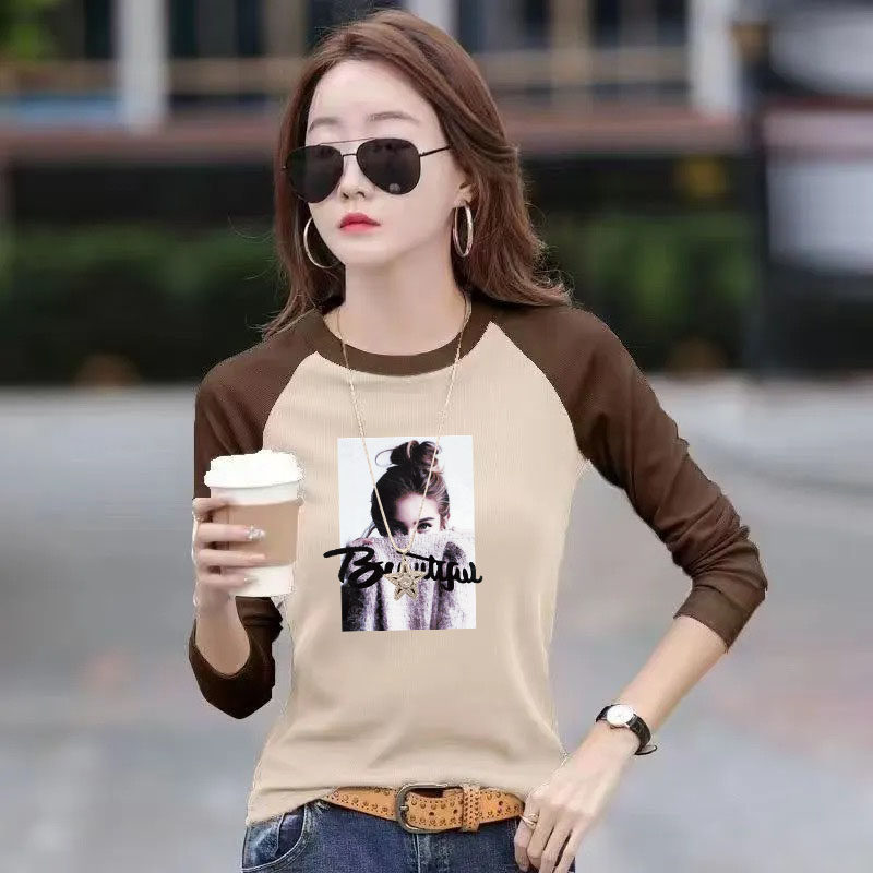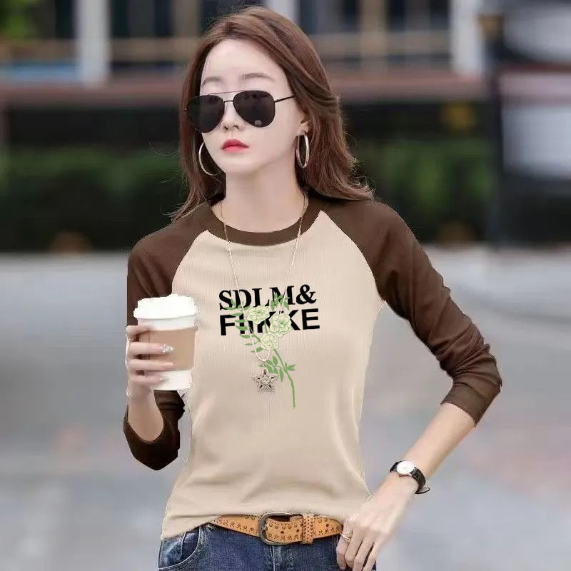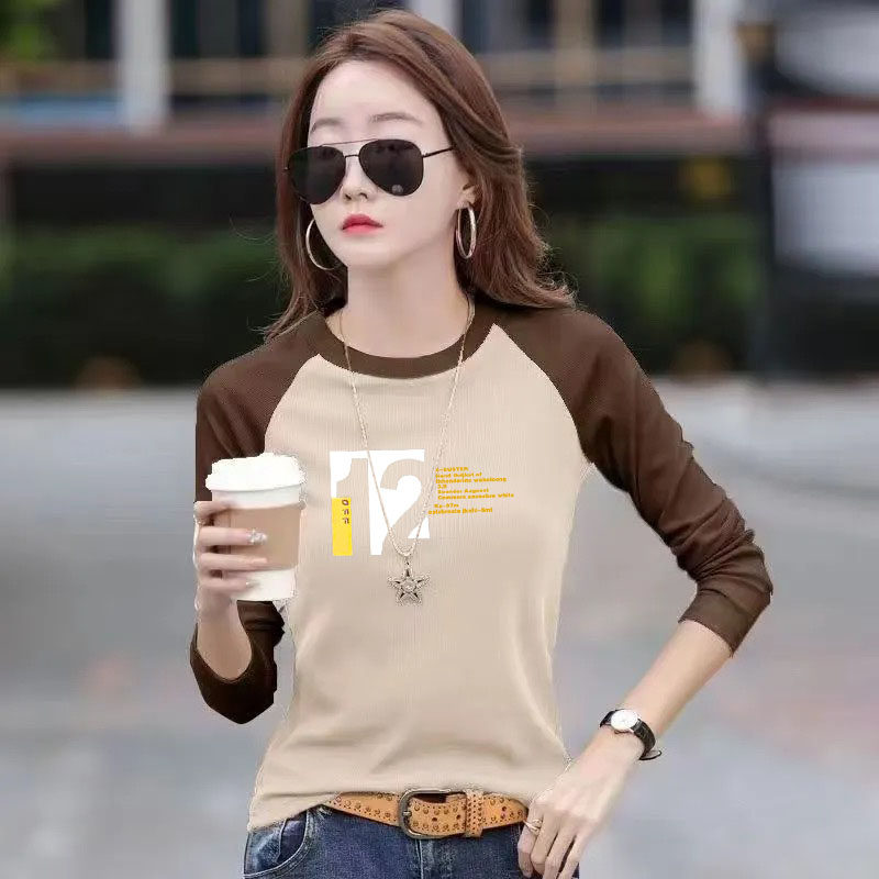 2024年春秋新款洋气宽松百搭时尚胖MM撞色印花拼接休闲长袖t恤ins