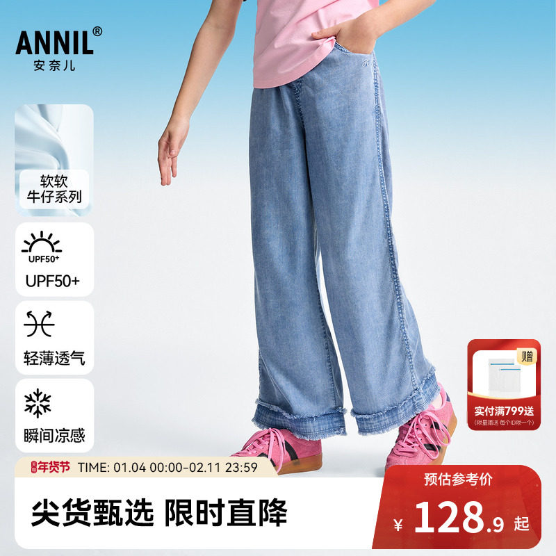 安奈儿童装女童牛仔单裤2025夏新款防晒轻薄透气凉感防蚊裤子