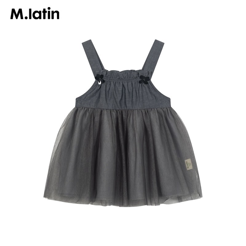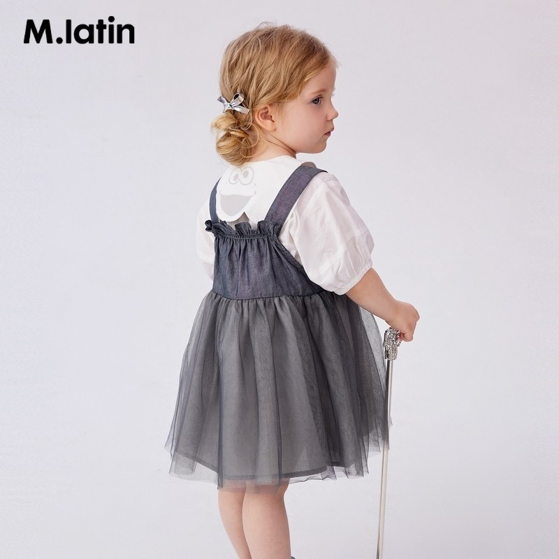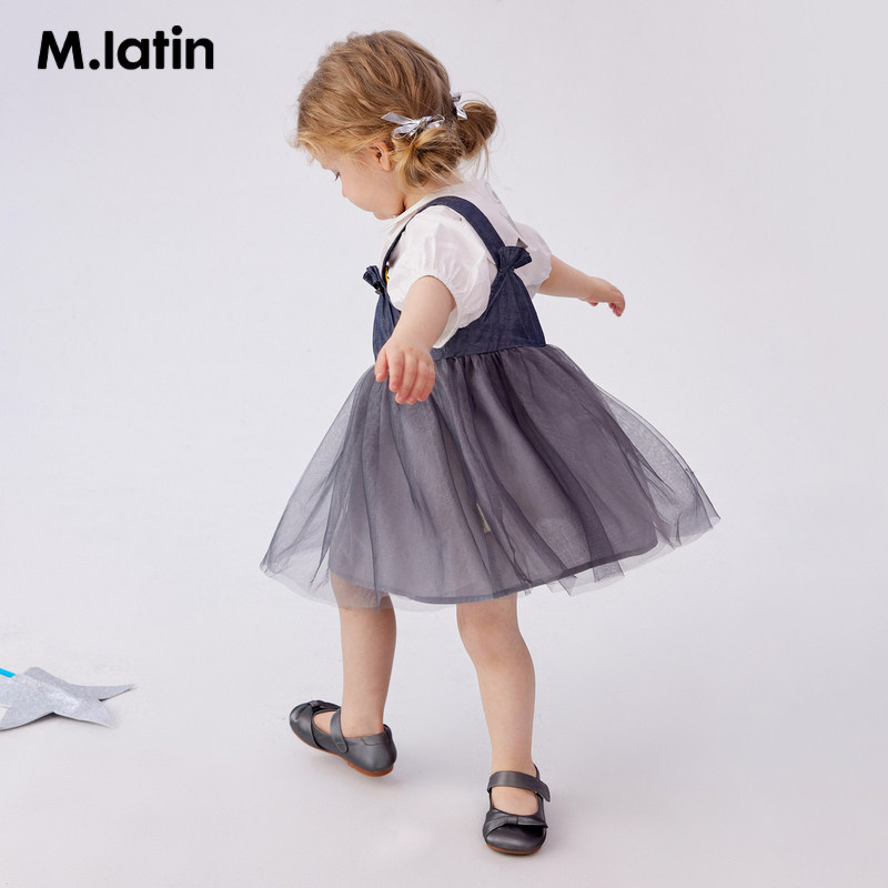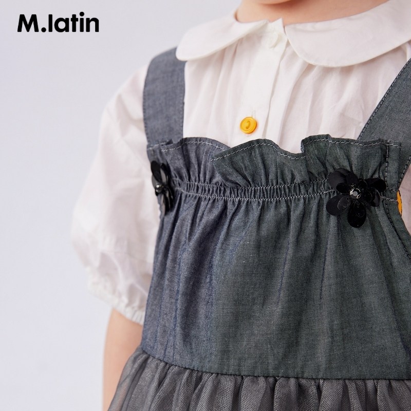 马拉丁童装儿童连衣裙夏新款女童小童花朵装饰纱裙仿牛仔背带裙