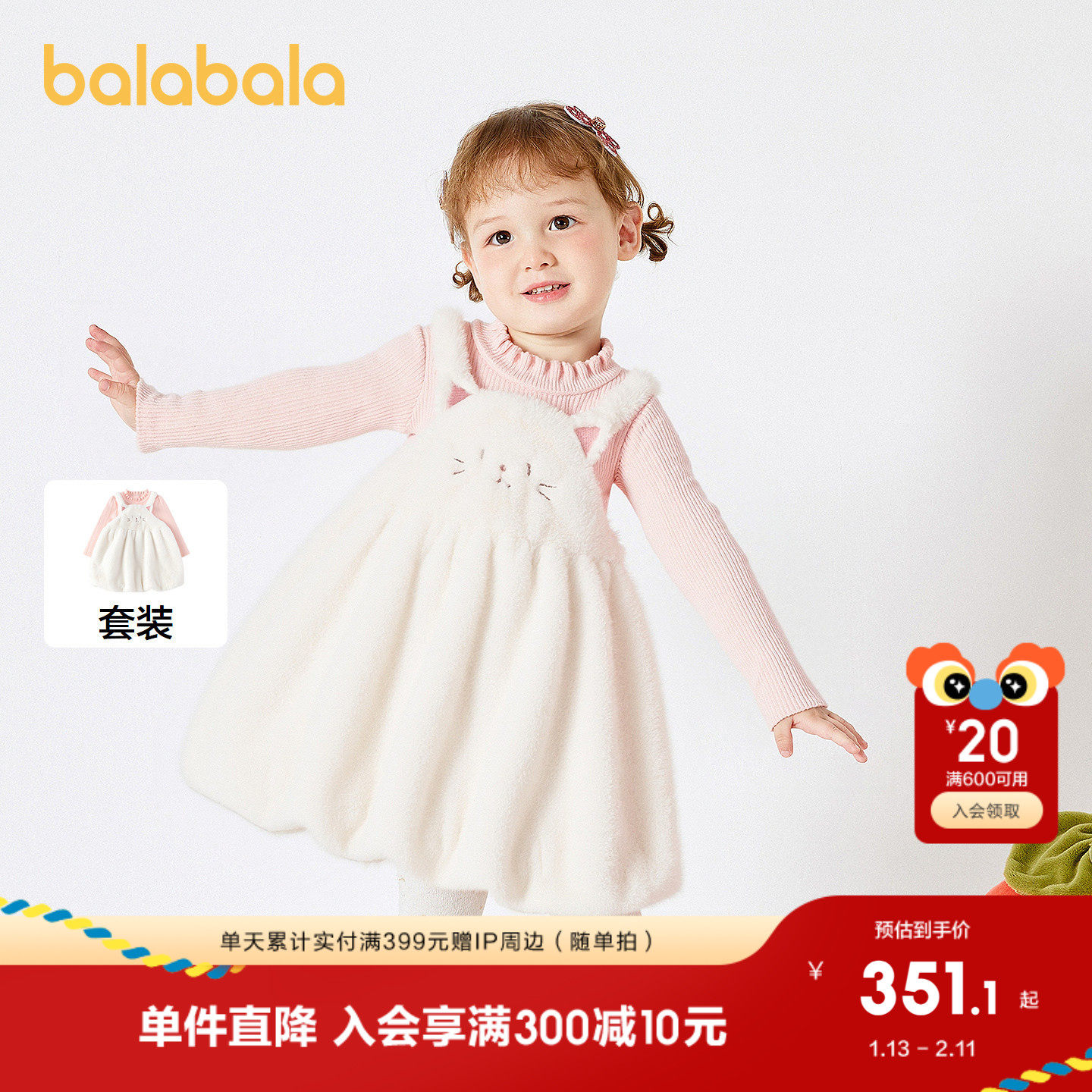 【商场同款】巴拉巴拉女童连衣裙套装秋冬2025新款背带裙两件套萌