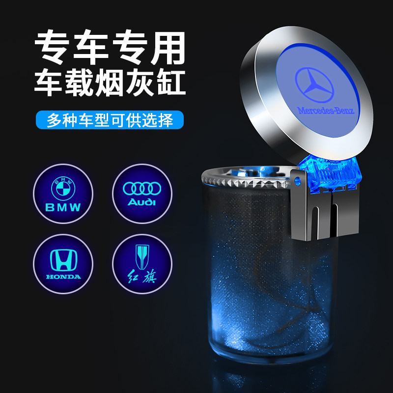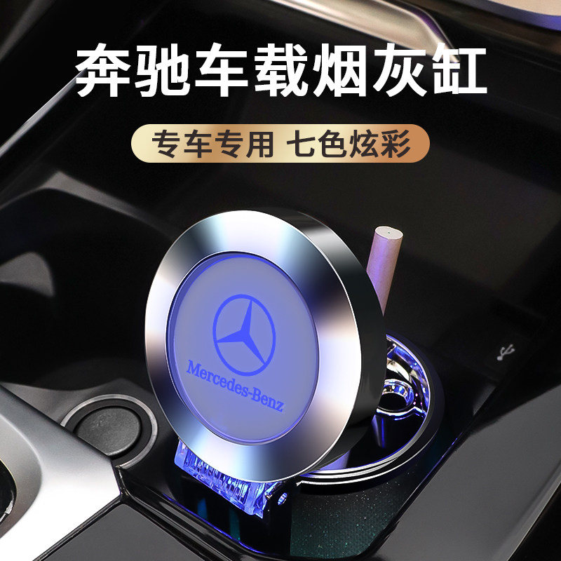 适用于奔驰E级C级S级A级GLC260L/GLA/GLE车内带灯有盖车载烟灰缸