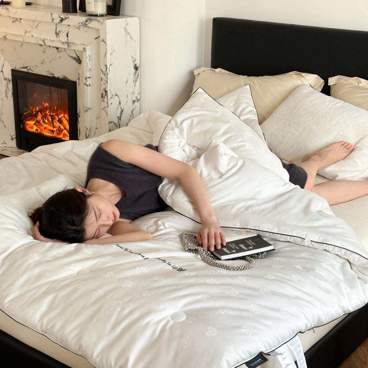 蚕丝雪绒60支纯棉提花高档被子芯双人秋冬保暖加厚床上高级绣花2m