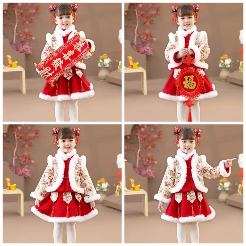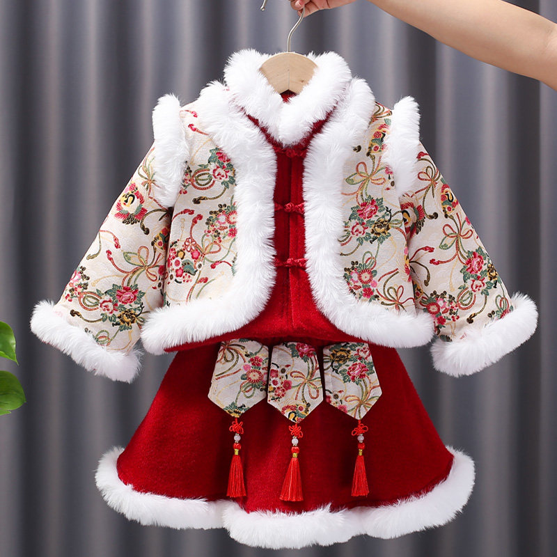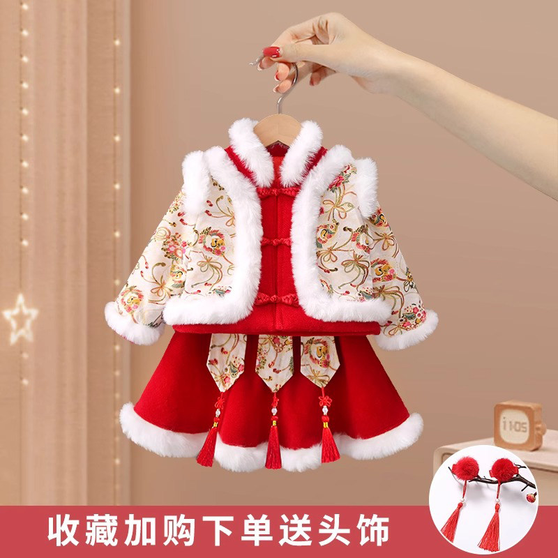 女童拜年服冬装新年衣服中国风儿童过年喜庆汉服唐装宝宝周岁礼服
