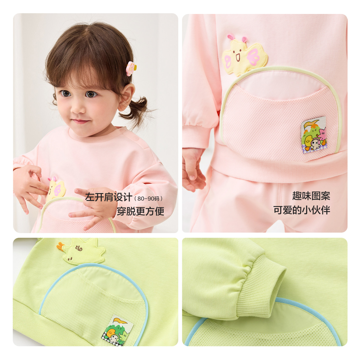 圆领卫衣套装,萌趣印花图案