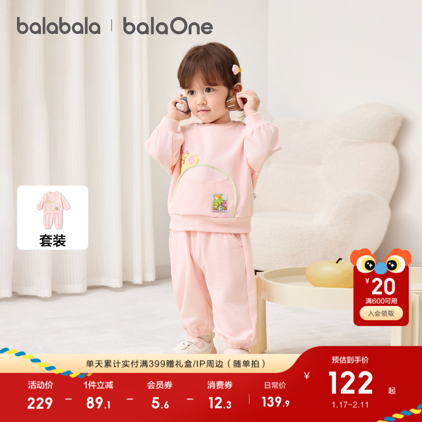 巴拉巴拉童装儿童套装两件套婴儿宝宝男女童2026新款春装萌趣舒适