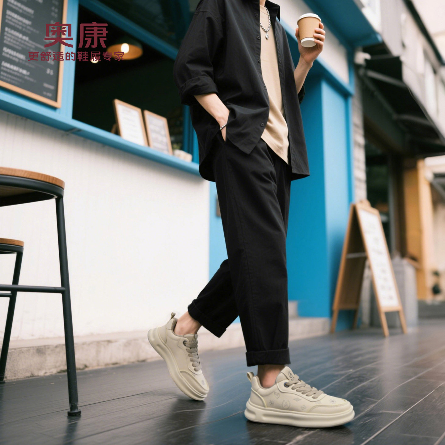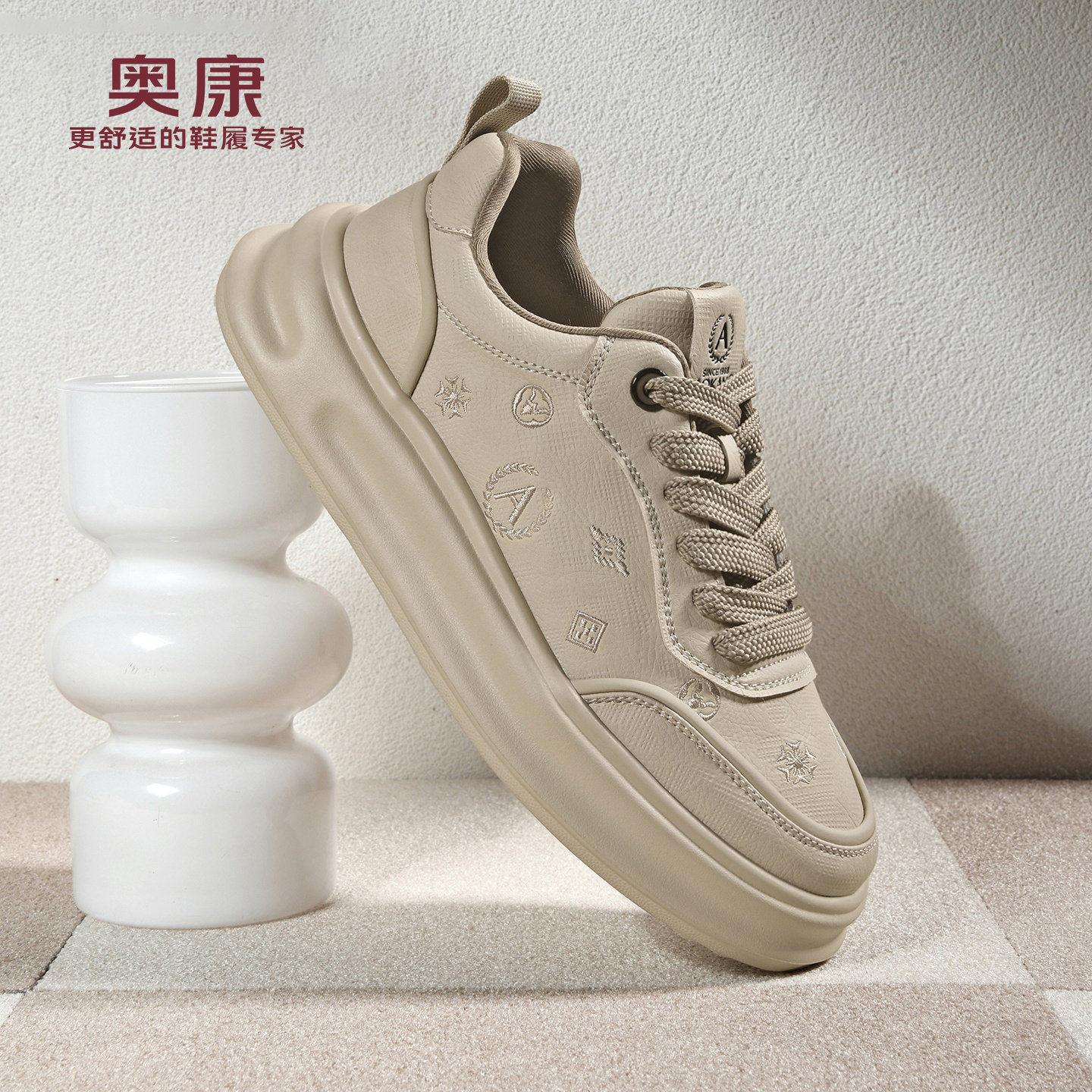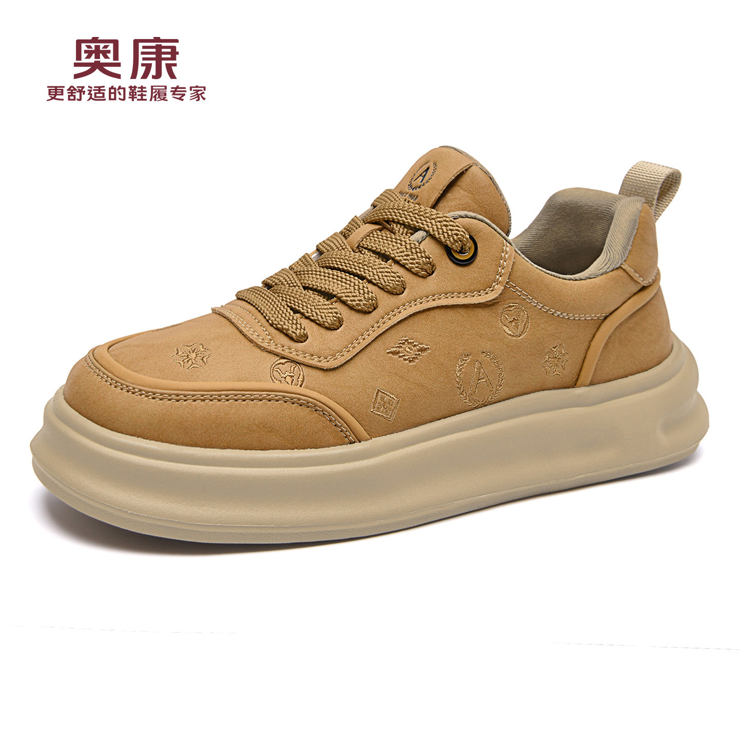 奥康 男鞋2026春季新款休闲板鞋男士时尚通勤厚底鞋子男棕色潮鞋W