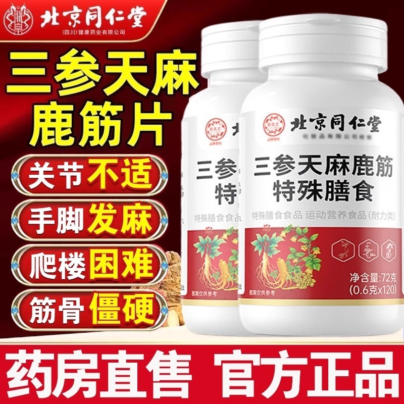 全网热销100万北京同仁堂三参天麻鹿筋片官方正品旗舰店特殊