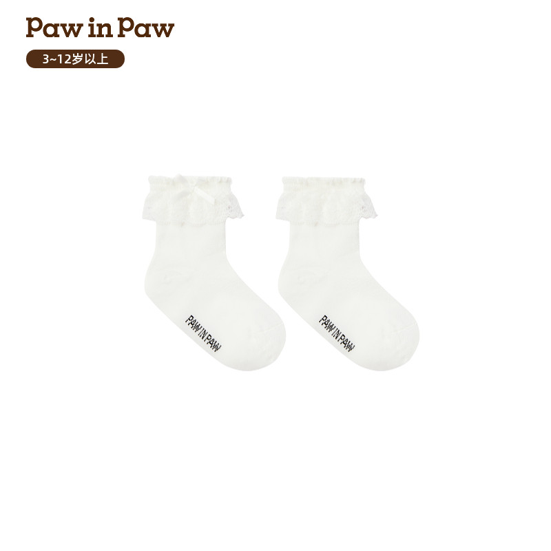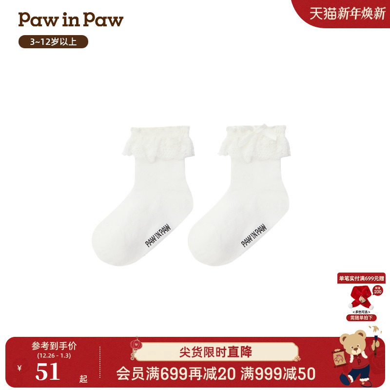 PawinPaw卡通小熊童装26年新款春夏季女童女宝宝荷叶边蕾丝袜子