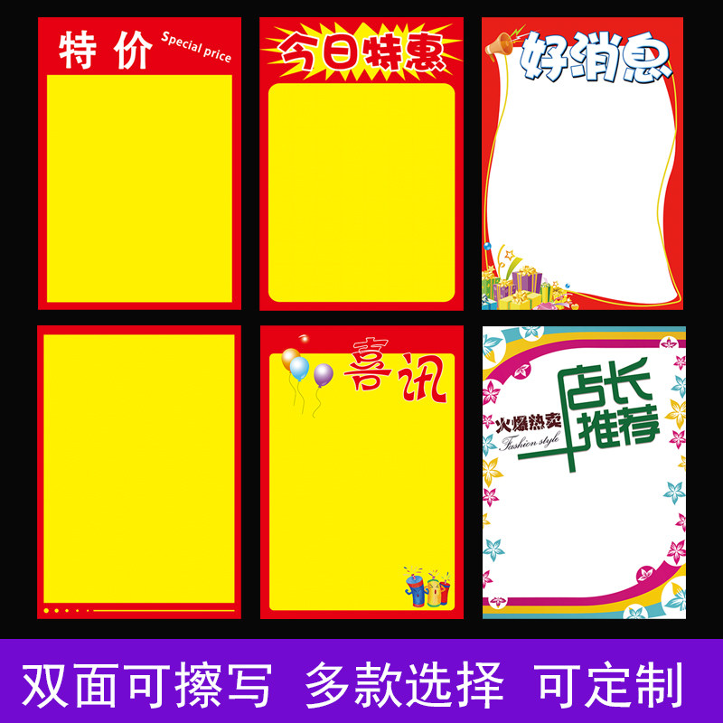 特大号可擦写POP广告纸药店新款创意空白海报纸超市商场活动促销手写特价牌店长推荐橱窗贴定制