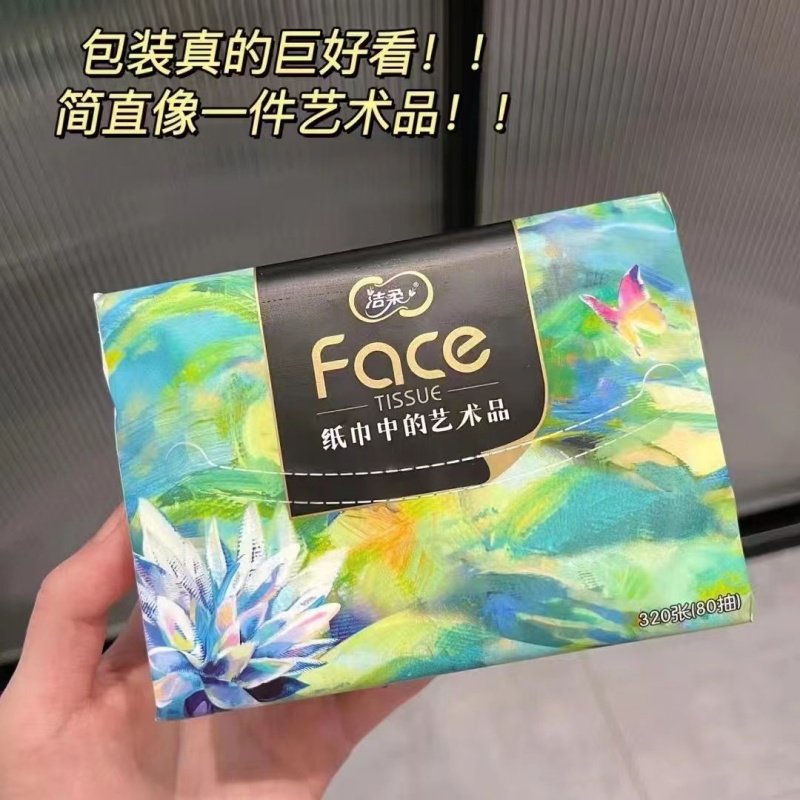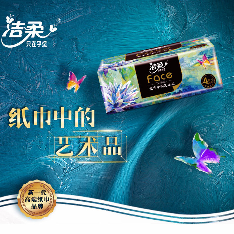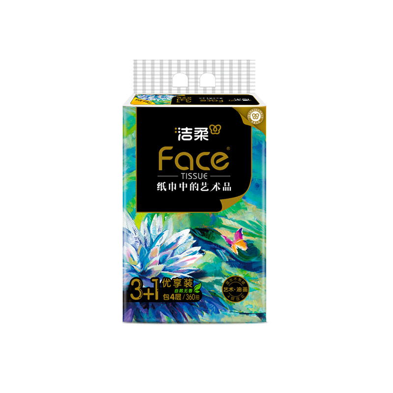 洁柔抽纸油画艺术4层80抽4包家用实惠餐巾纸卫生纸面巾纸木浆原生