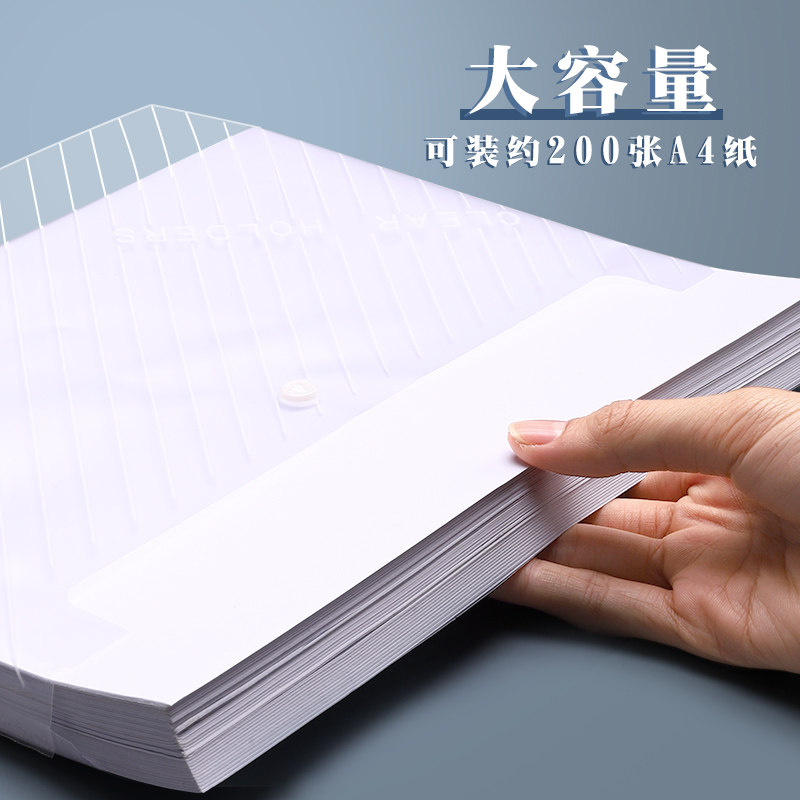 100个a4文件袋大容量加厚透明收纳袋档案彩色整理资料夹学生试卷分科袋按扣PP商务公文包办公用品大全批发