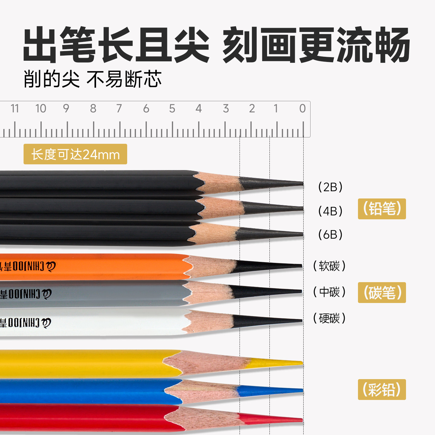 青竹素描削笔器美术生专用卷笔刀手摇式素描铅笔炭笔削笔机不断芯刨笔机自动进笔卷笔器可调节速写削笔器美术