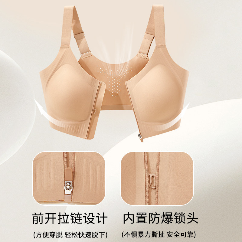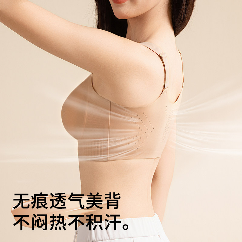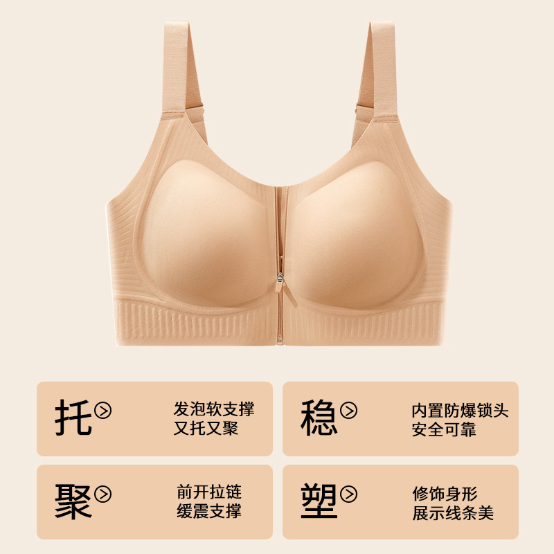 前拉链无痕内衣女运动防震背心大胸显小粉底液收副乳聚拢前扣文胸