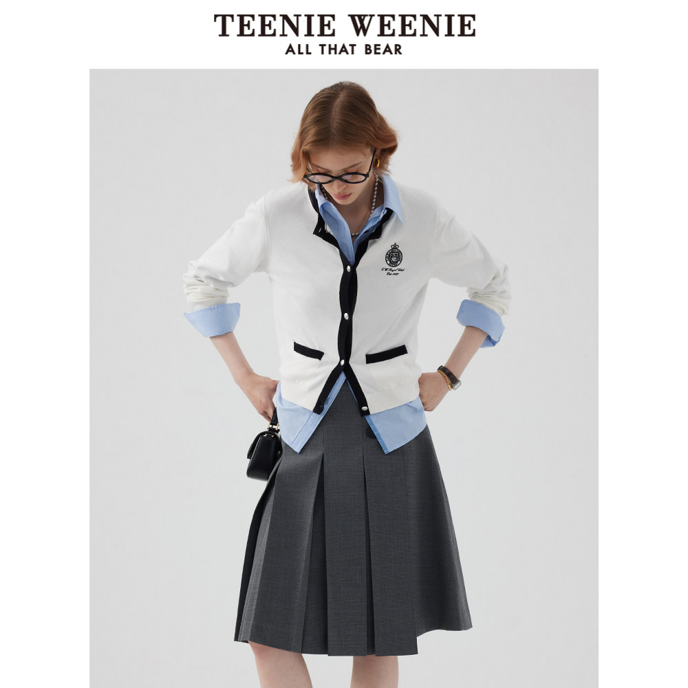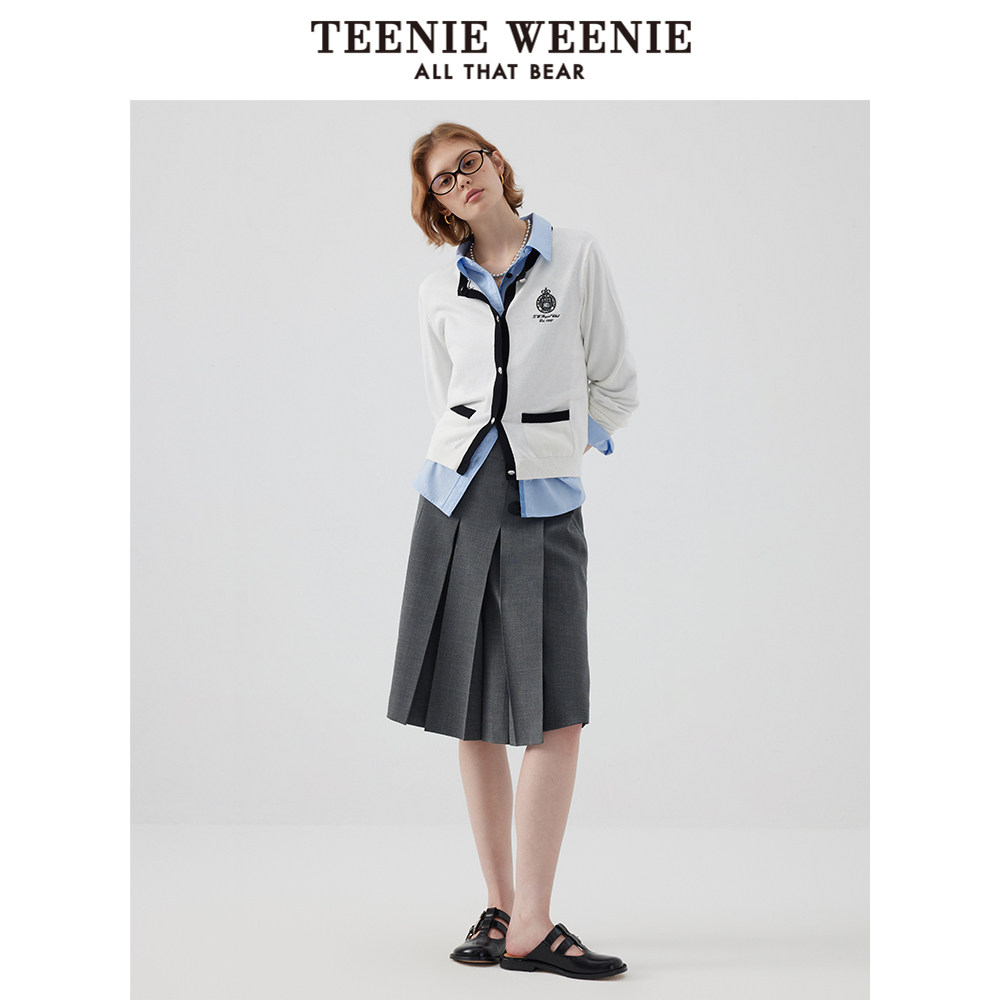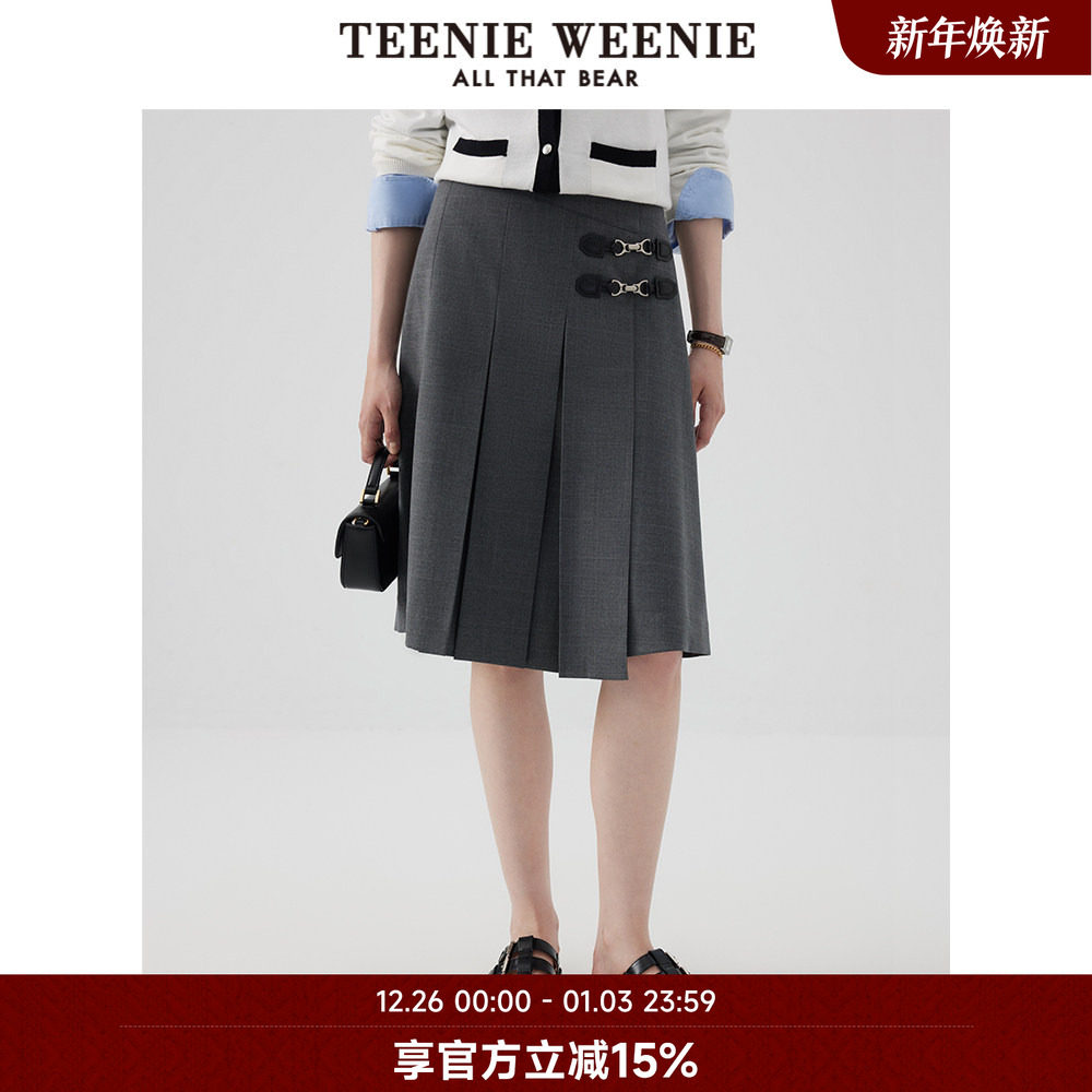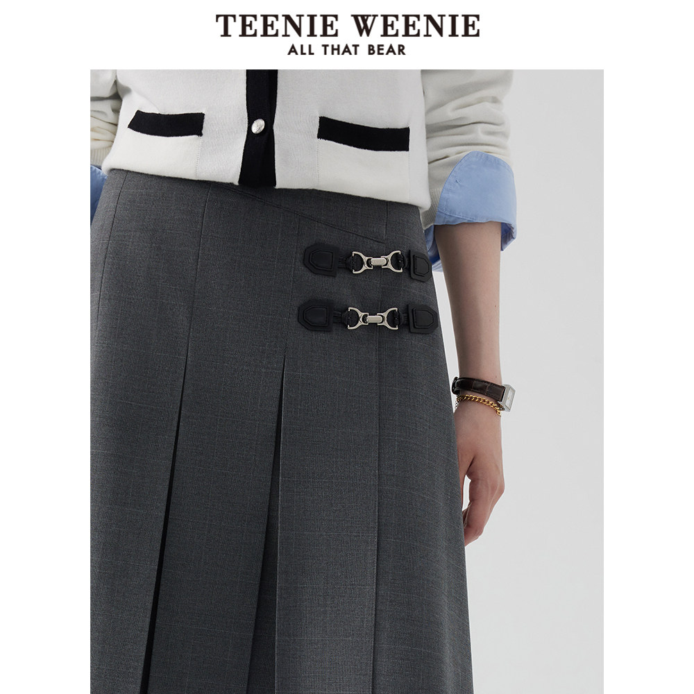 TeenieWeenie小熊奥莱早秋百褶中长款半身裙学院风裙女