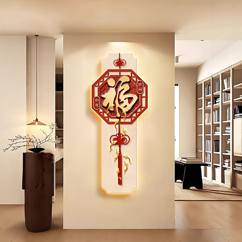 福字玄关装饰画新年喜庆走廊过道挂画2026新款高端入户门壁画灯