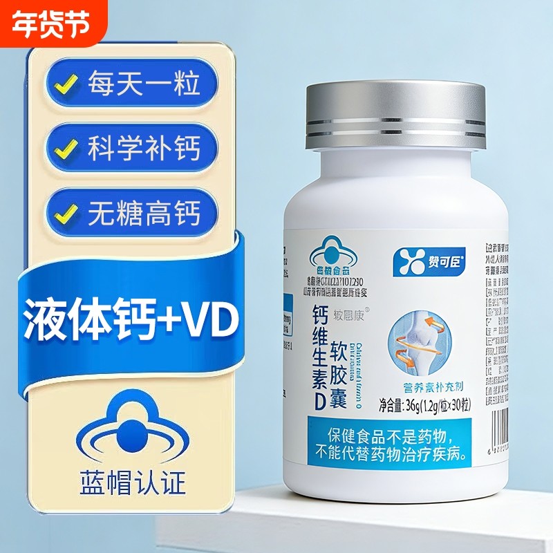钙维生素D软胶囊青少年成人学生中老年儿童孕妇补钙无糖液体钙
