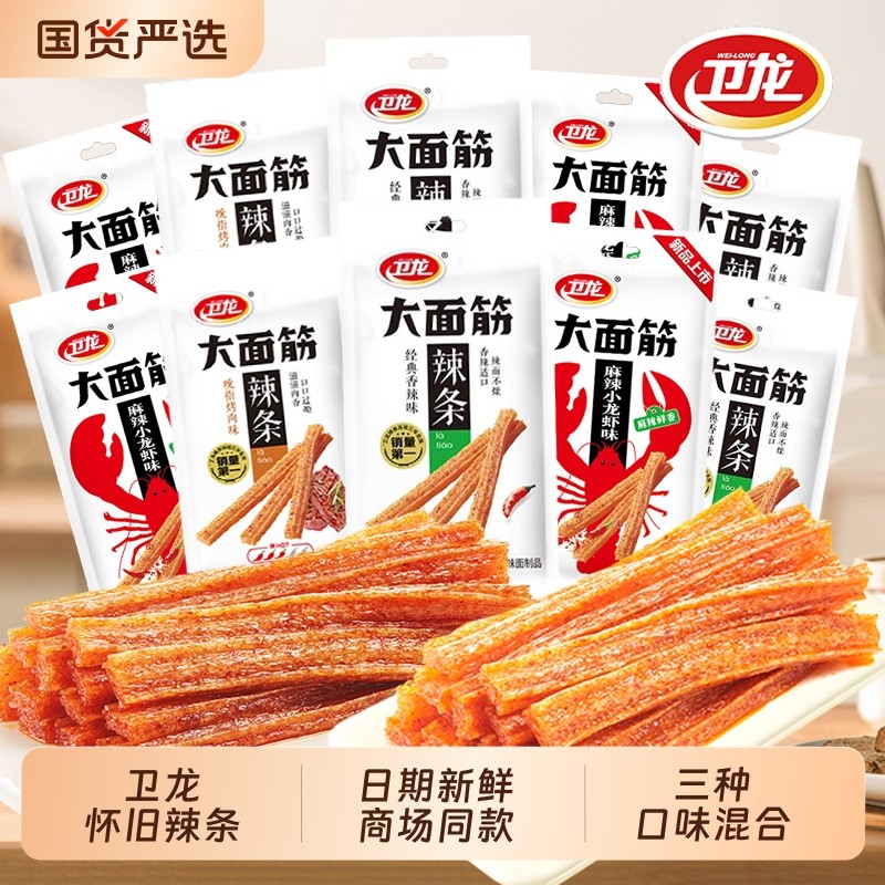 卫龙辣条大面筋香辣儿时怀旧小吃办公室解馋麻辣休闲零食袋装批发