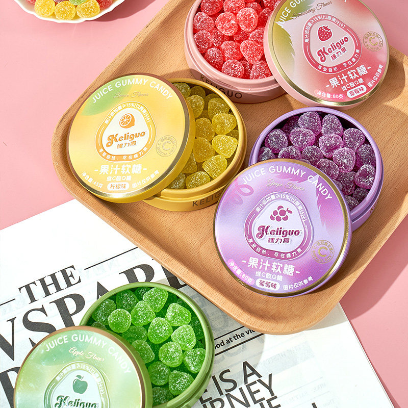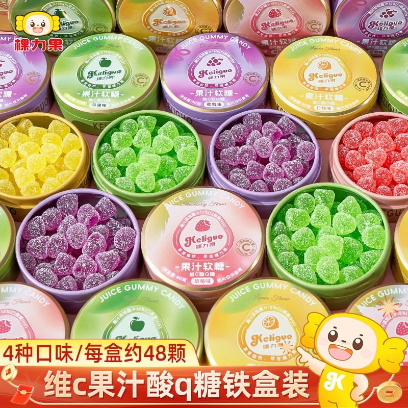 维C果汁酸q糖软糖铁盒装qq糖酸砂水果糖果盒儿童零食柠檬果味混合