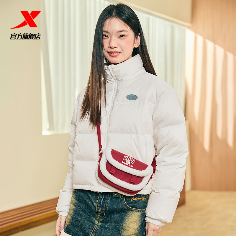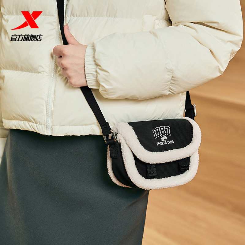 特步挎包情侣款20245年秋季复古休闲便携通勤包包百搭运动单肩包