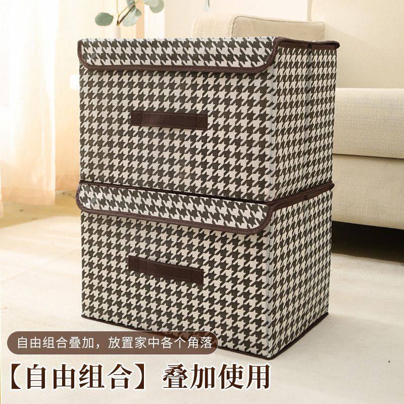 衣服收纳箱千鸟格家用衣柜分层整理收纳神器放衣物布艺折叠收纳筐
