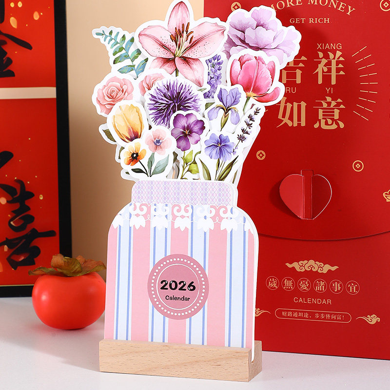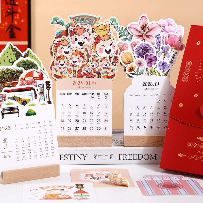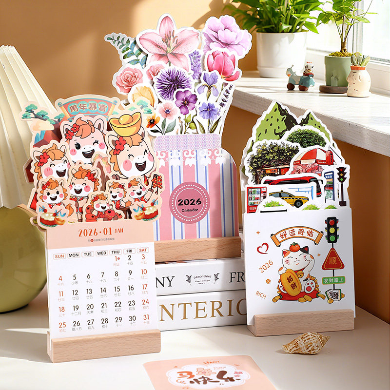 2026马年新款创意卡片式月历小台历花艺台历定制ins简约计划本打卡学生记事本桌面摆件可爱小号订制定做logo