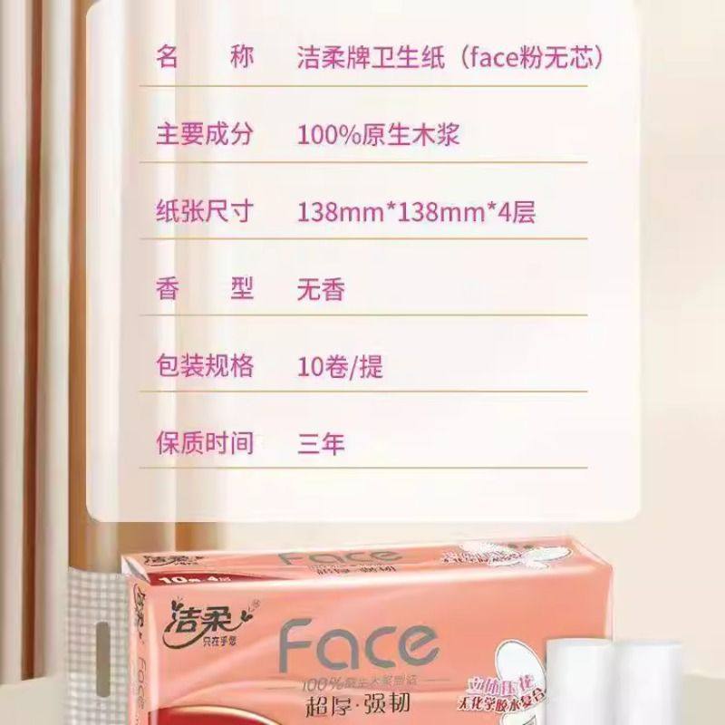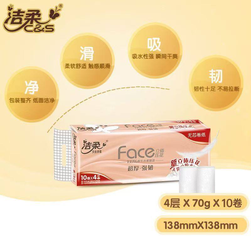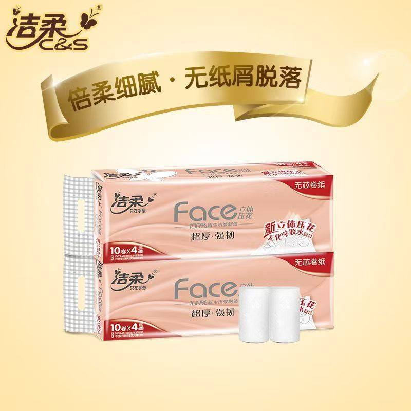 洁柔卷纸无芯卫生4层印花厚纸巾学生家用实惠装整箱贩装压花强韧
