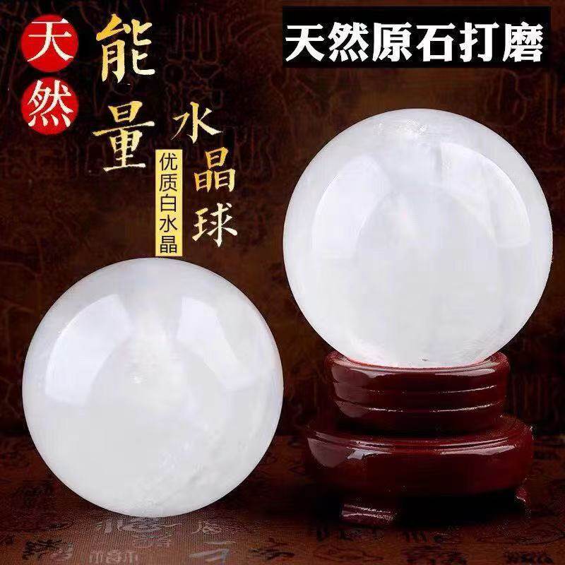 天然白水晶球纯原石摆件白玉石球客厅玄关厨房办公室家居摆件