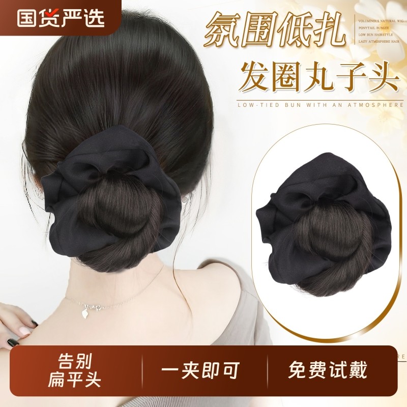 低丸子头假发抓夹鬓盘发发圈发饰后脑勺神器假发包短发旗袍花苞头