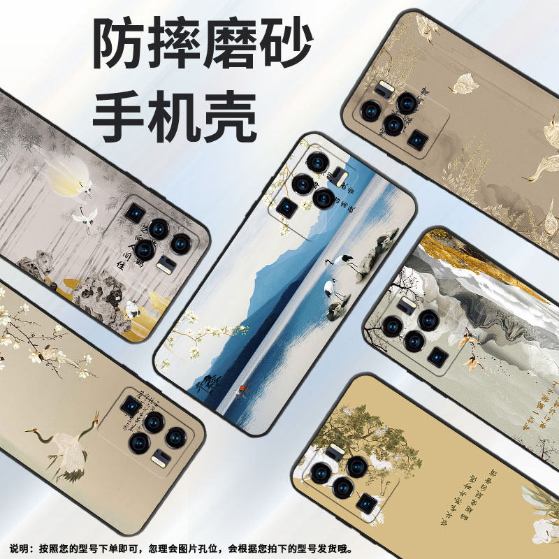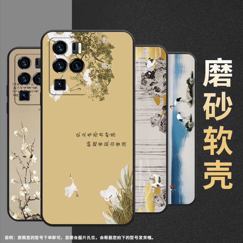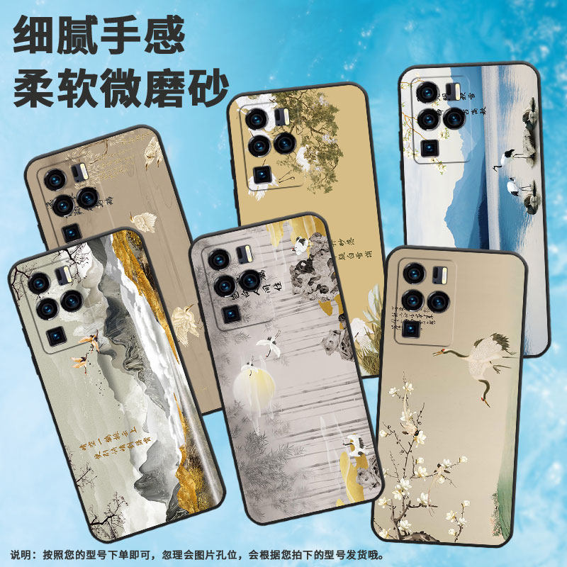 适用中兴axon30ultra手机壳axon40pro新款axon40ultra山水风景飞鹤中国风简约个性仙鹤防摔硅胶时尚水墨花鸟