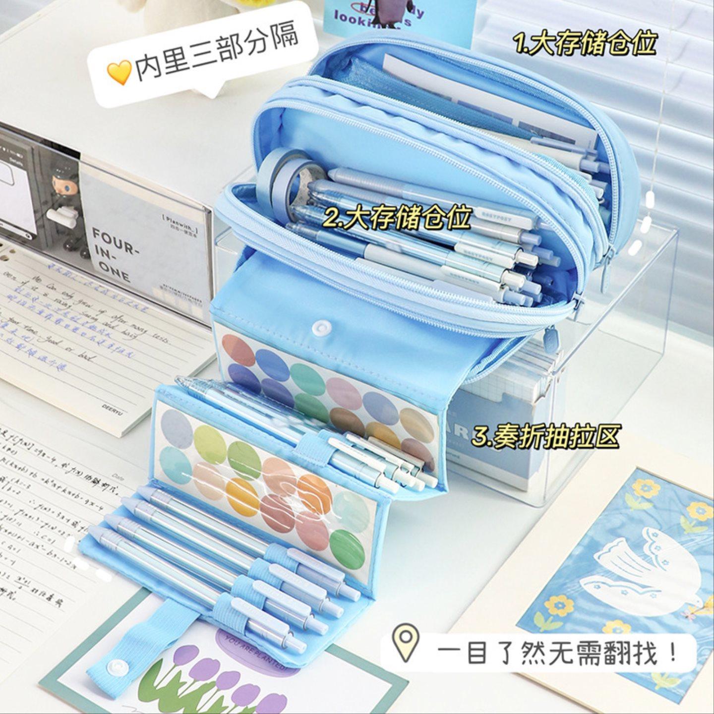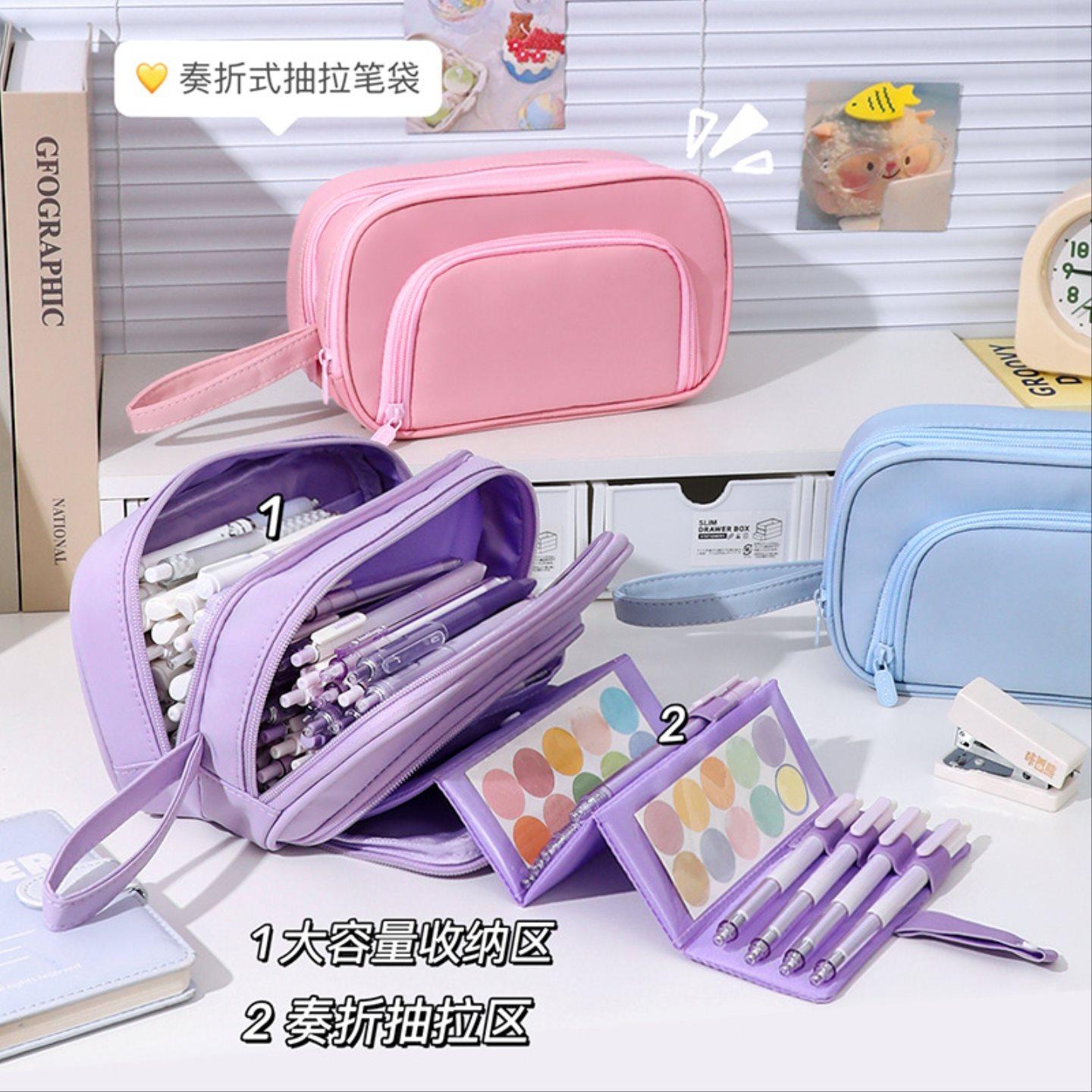 大容量笔袋批发抽拉式奏折文具袋学生分类手提包旅行收纳袋子包包
