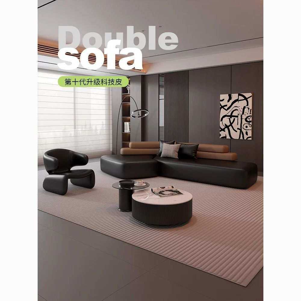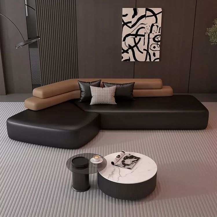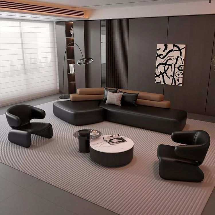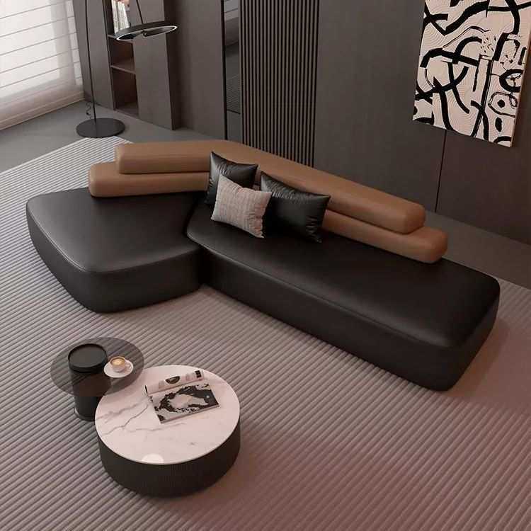 酒店大堂转角沙发复工风设计师客厅异形接待休息区会客皮艺沙发