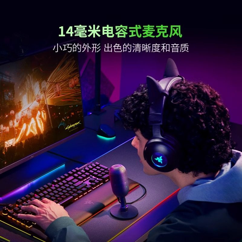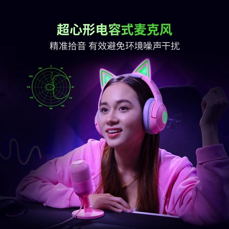 Razer雷蛇魔音海妖V3迷你版mini粉晶麦克风游戏直播录音室话筒285