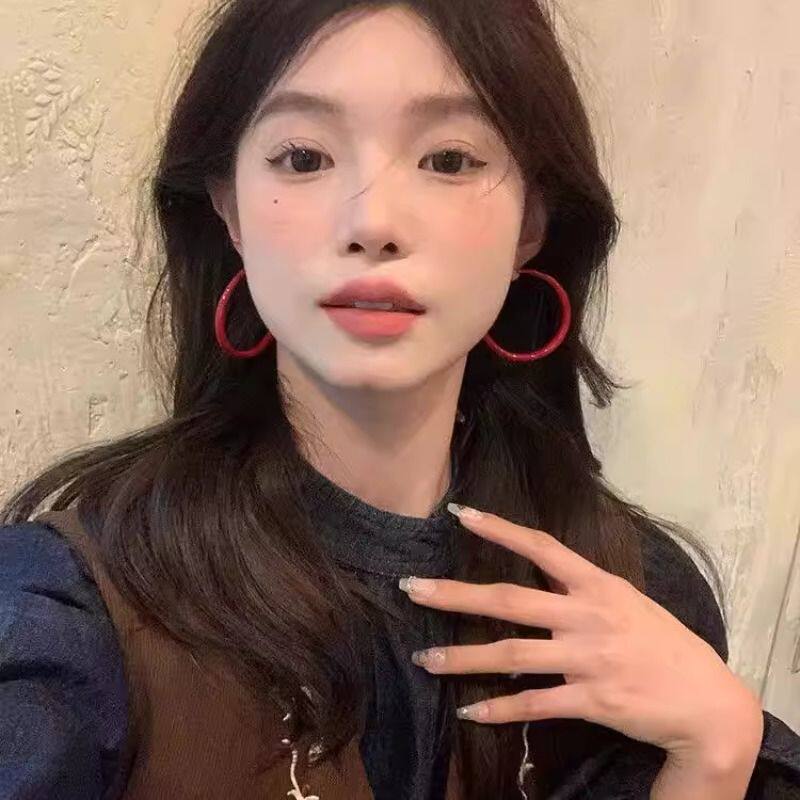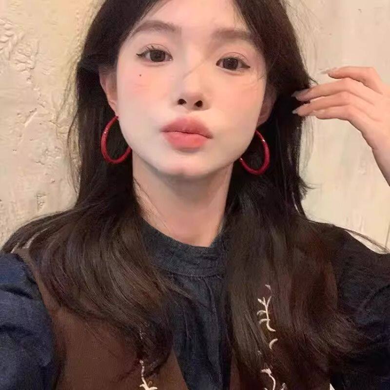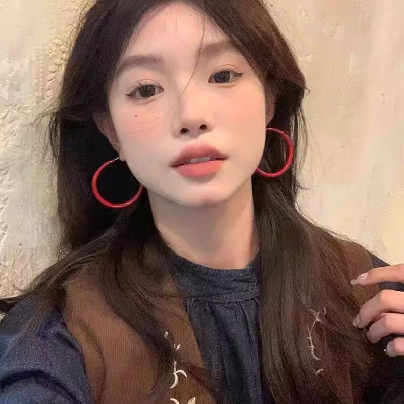 999纯银耳针耳环圈圈大圈秋冬红色耳饰女耳圈高级感轻奢素圈耳夹