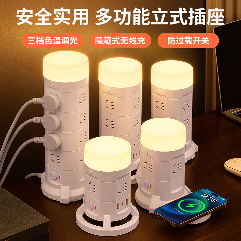 公正品立式电脑专用插座多功能usb插排办公宿舍家用插排防过载