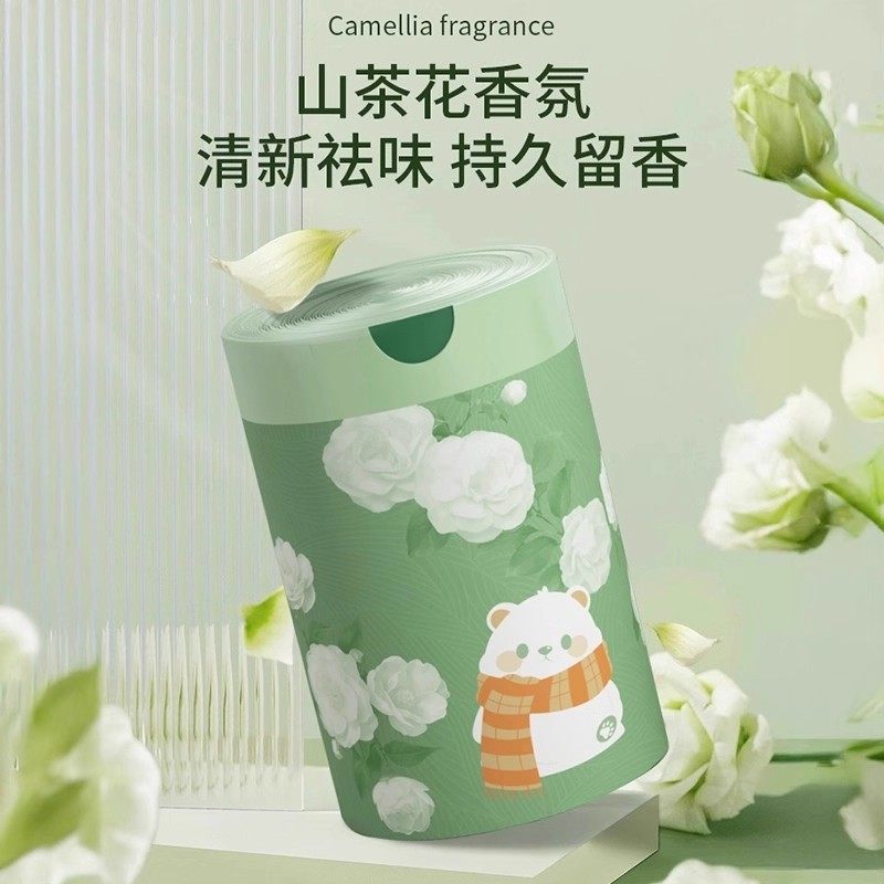山茶花味垃圾袋家用加厚手提式免撕抽绳厨房专用塑料袋特厚印花