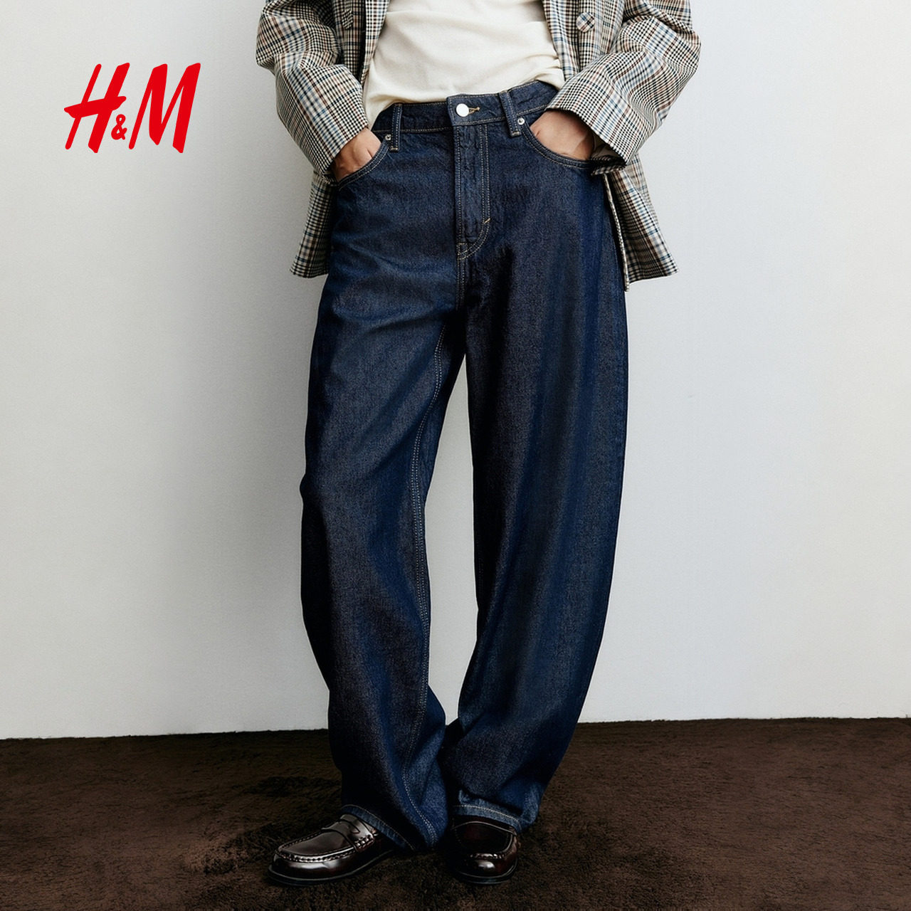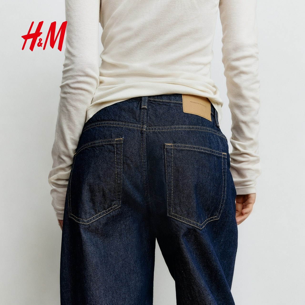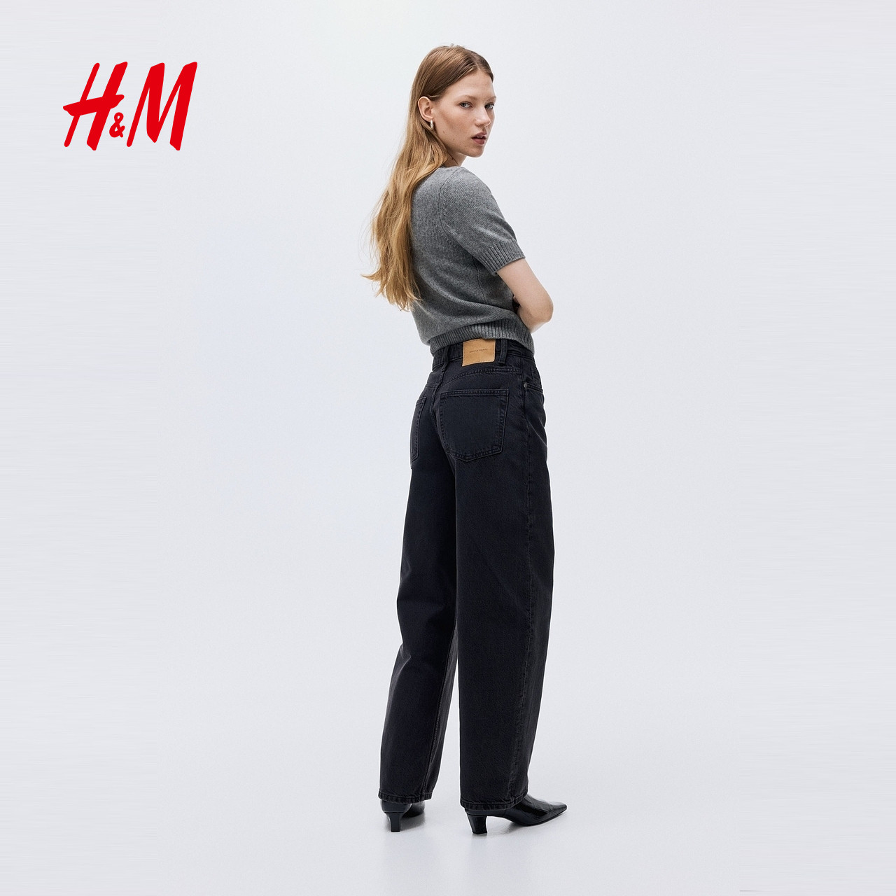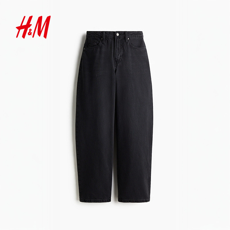 HM女装牛仔裤2025年新款镰刀牛仔裤宽松高腰设计潮流长裤1290506