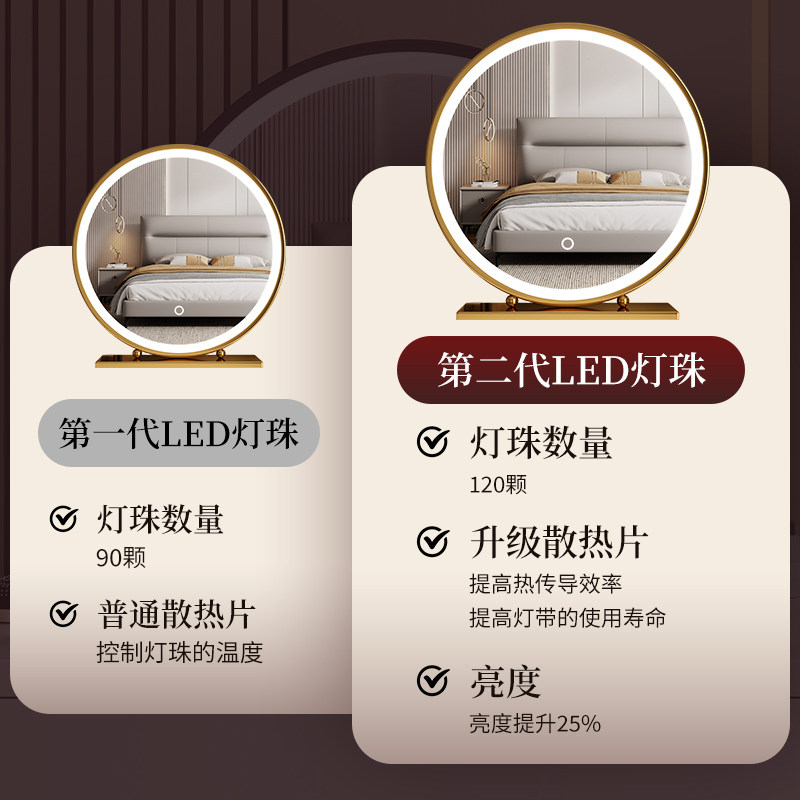主卧镜子2025新款led梳妆台化妆镜带灯补光灯台式桌面梳妆镜轻奢