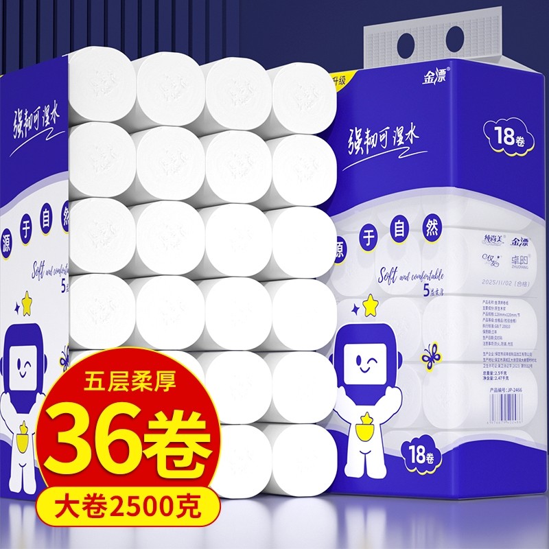 丽邦5层妇婴大卷纸2500g/1800g家庭实惠装卷筒纸无芯手纸厕所纸巾
