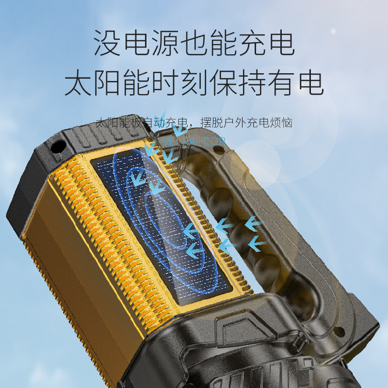 太阳能手电筒强光充电户外超亮远射led氙气家用巡逻矿手提探照灯
