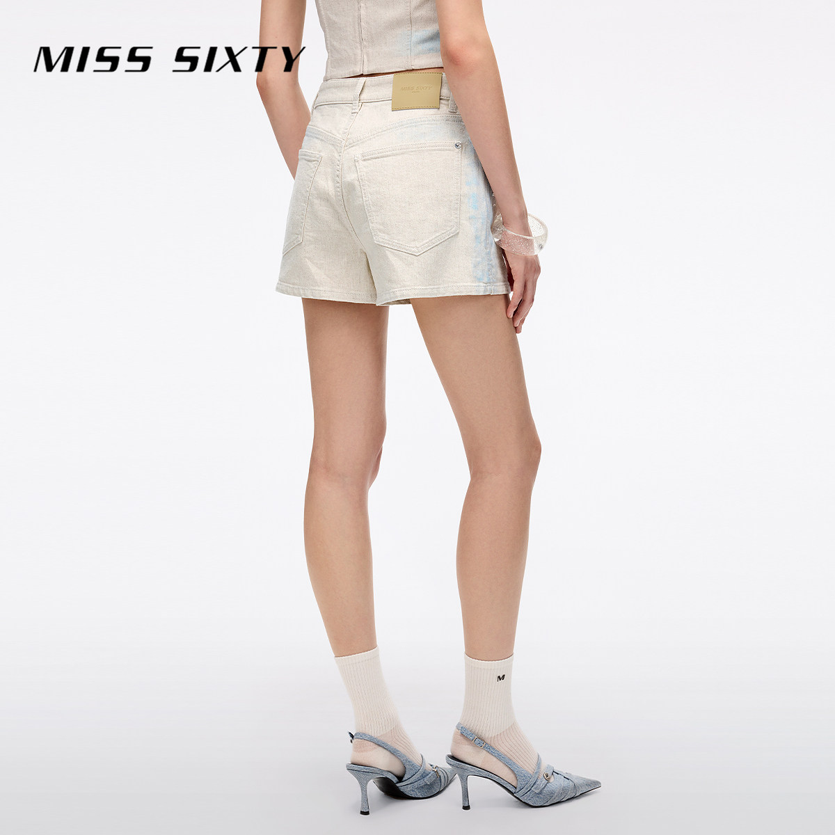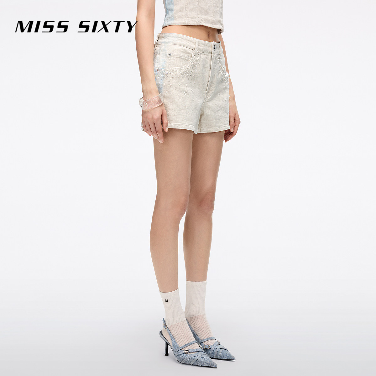 【进口牛仔面料】Miss Sixty2025夏季新款牛仔短裤女重工钉珠