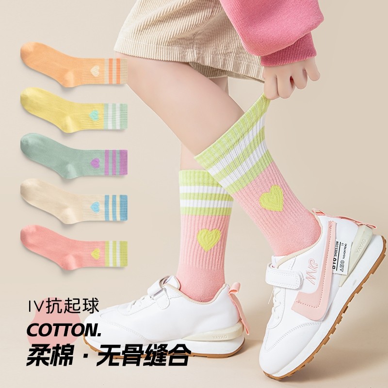 纯棉童袜春秋款夏季薄款防臭不起球男女袜子全棉中筒袜时尚儿童袜