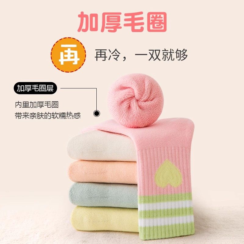 袜子女童秋冬加厚毛圈袜儿童长筒袜加绒保暖棉袜冬季女孩宝宝童袜